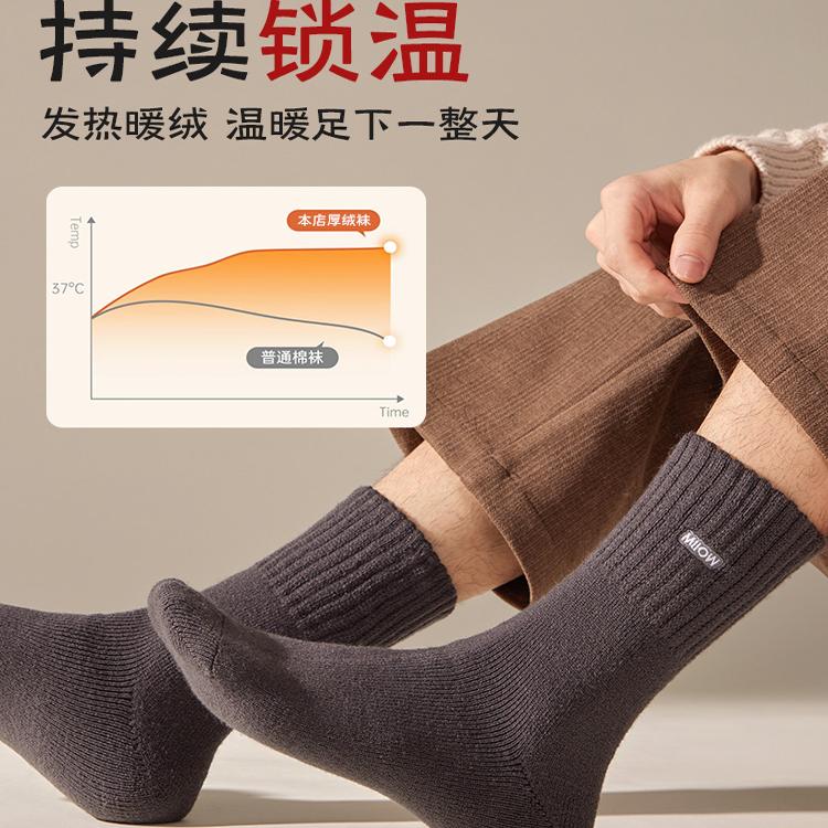 超厚德绒袜子男秋冬款加绒加厚长筒保暖中筒袜居家睡眠地板袜长袜