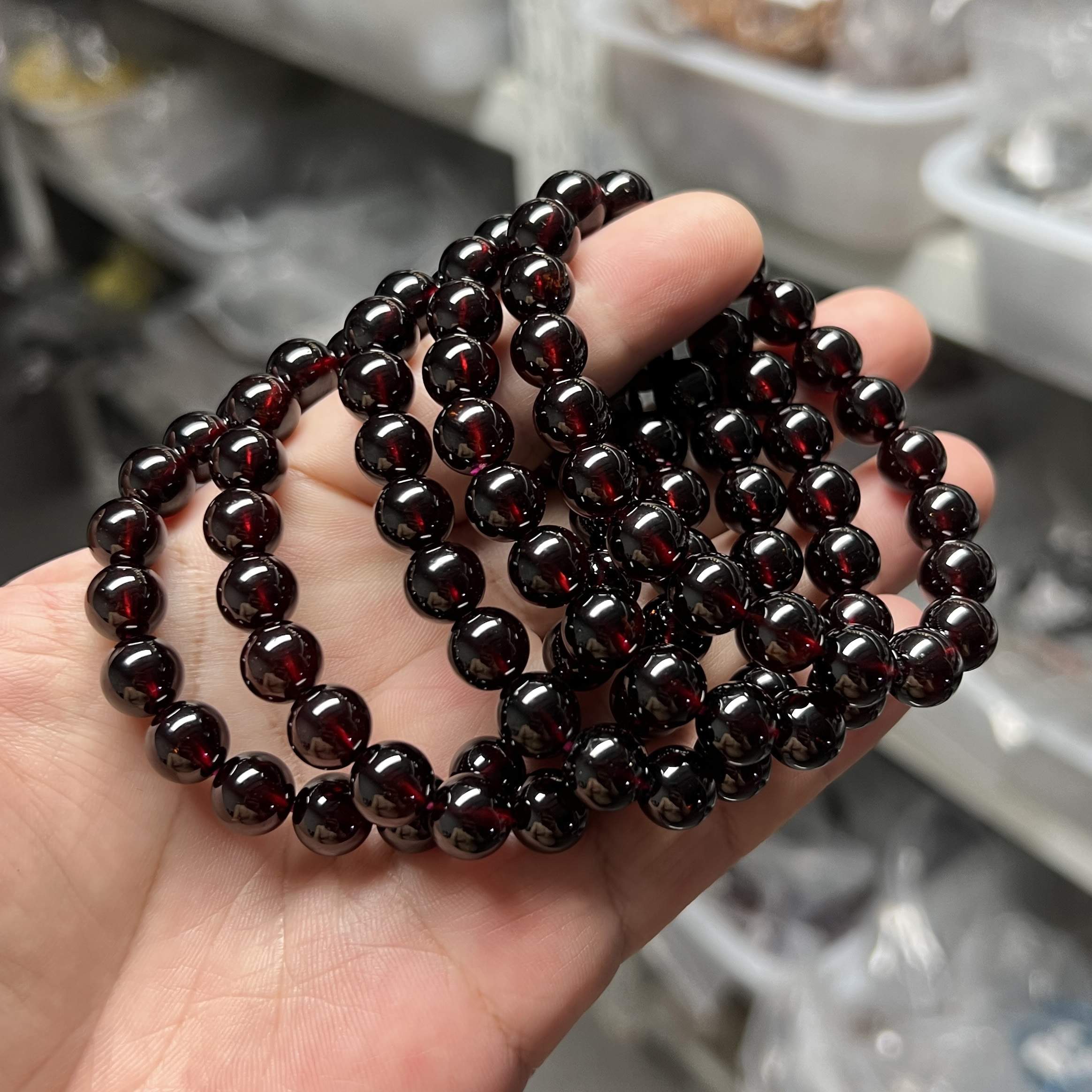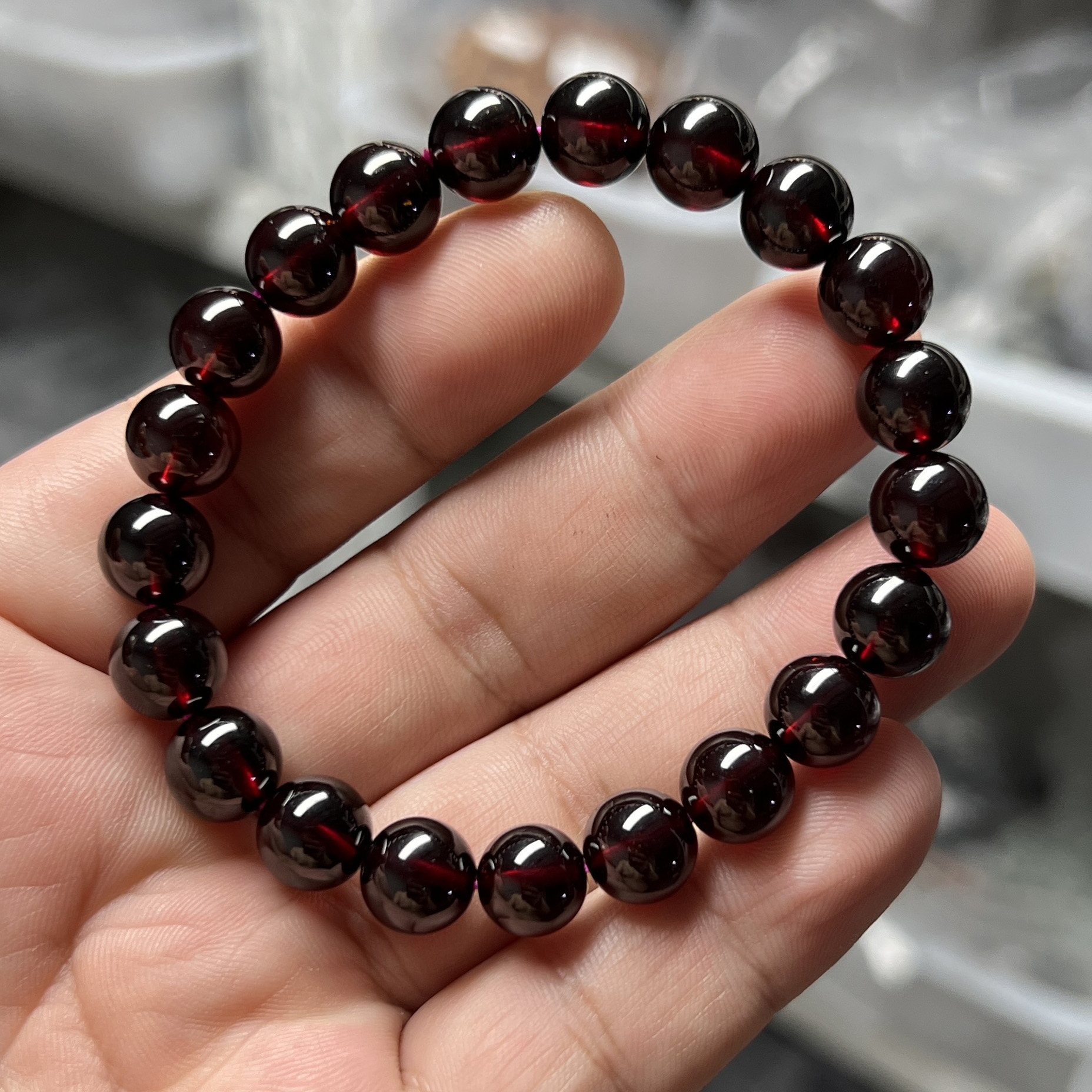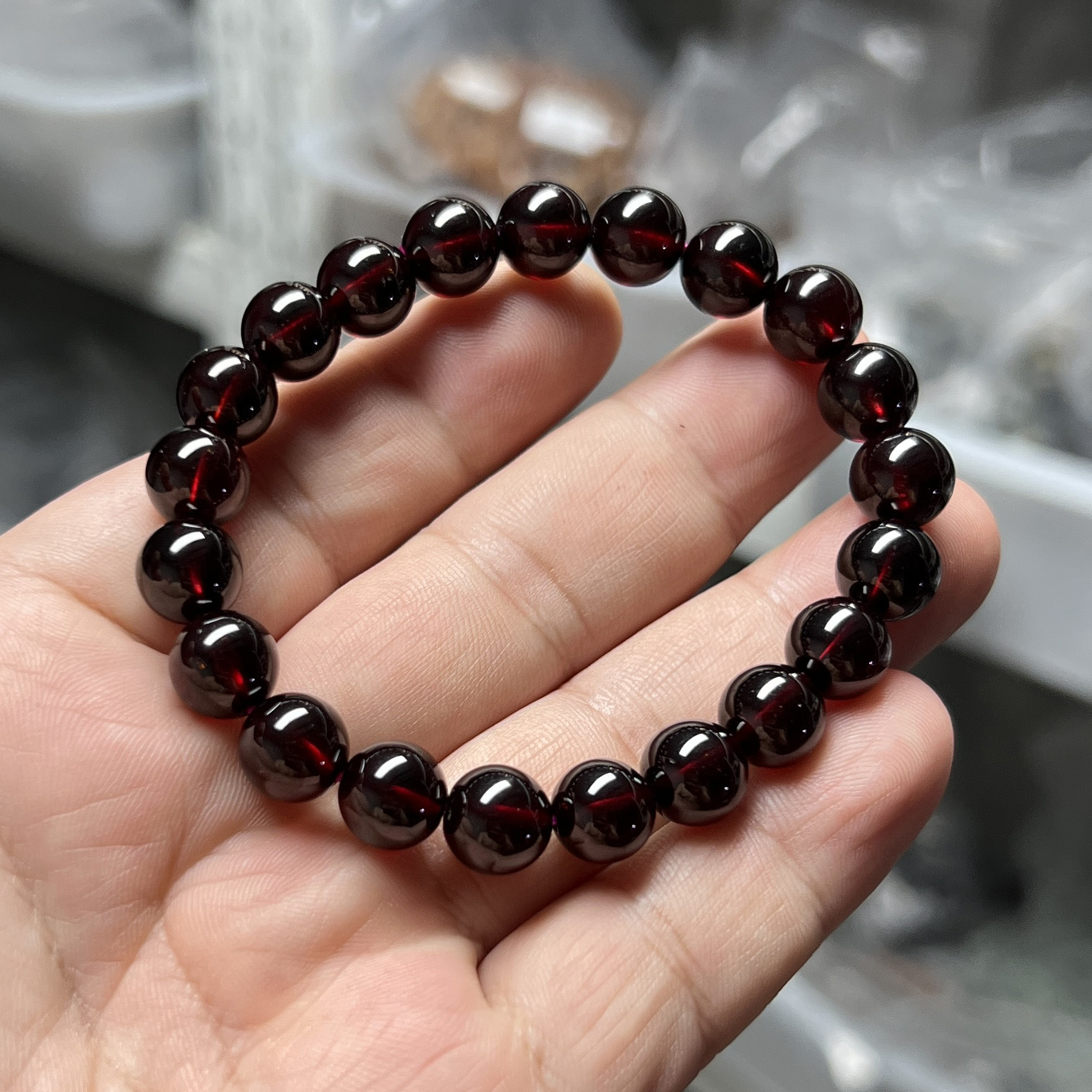 捡漏老矿酒红石榴石手串单圈大珠子冰透红酒色透体水晶手链女士