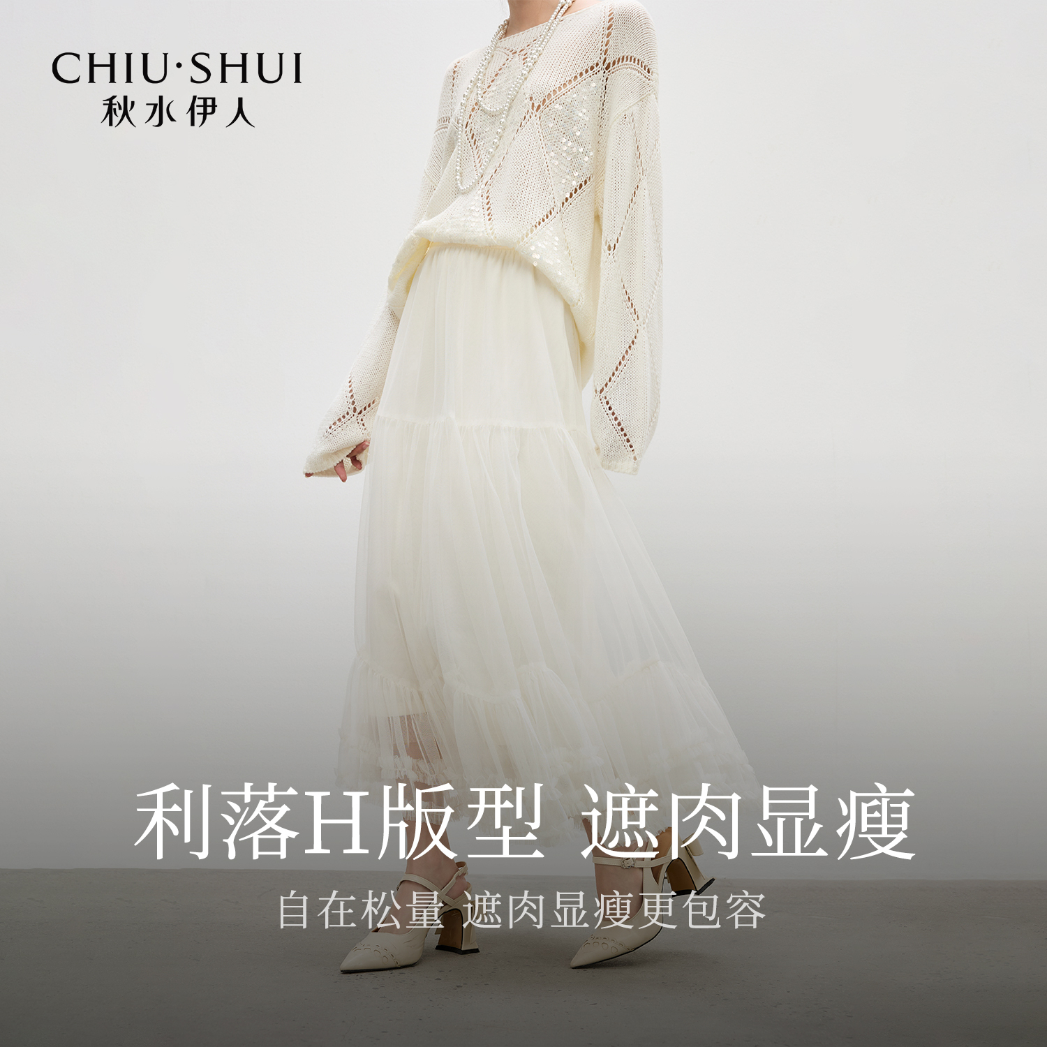 秋水伊人浪漫优雅裙子2025年冬季新款女时尚木耳边网纱设计半身裙