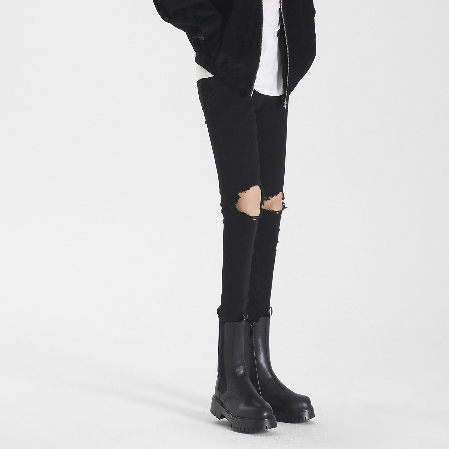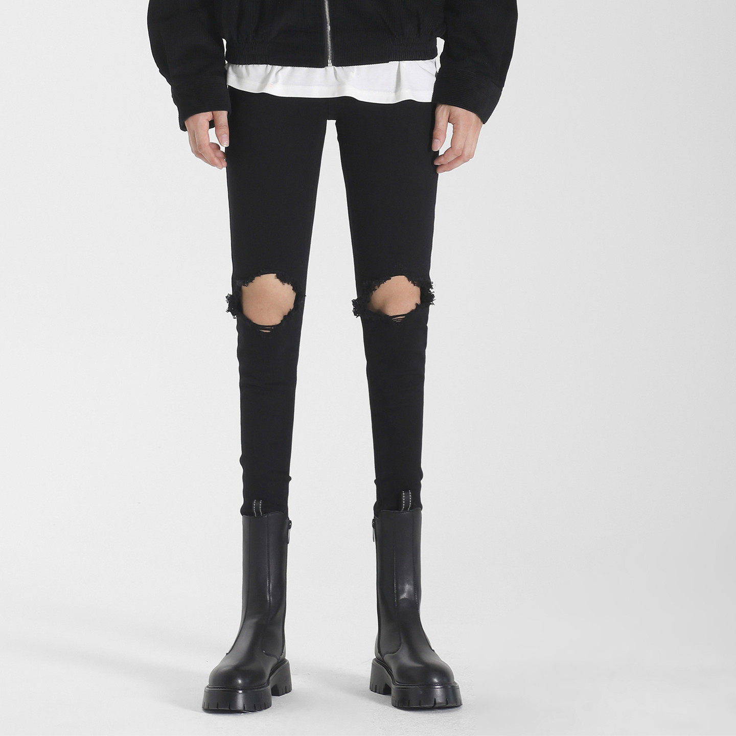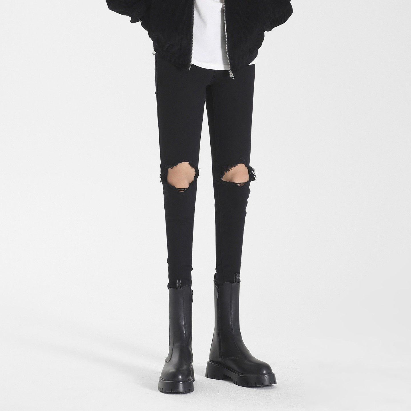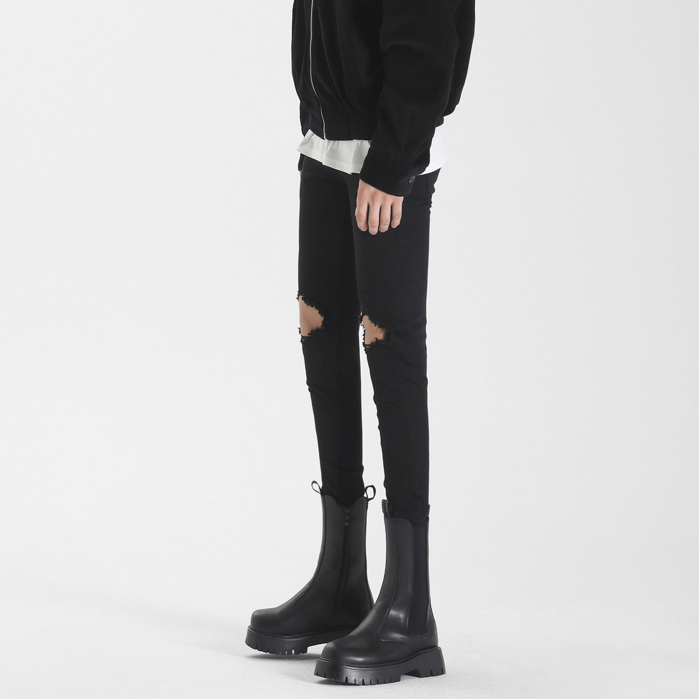 黑色高街破洞牛仔裤潮流小脚