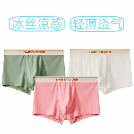 内裤男士冰丝薄款透气凉感四角裤头青年男生潮流个性舒适平角裤衩