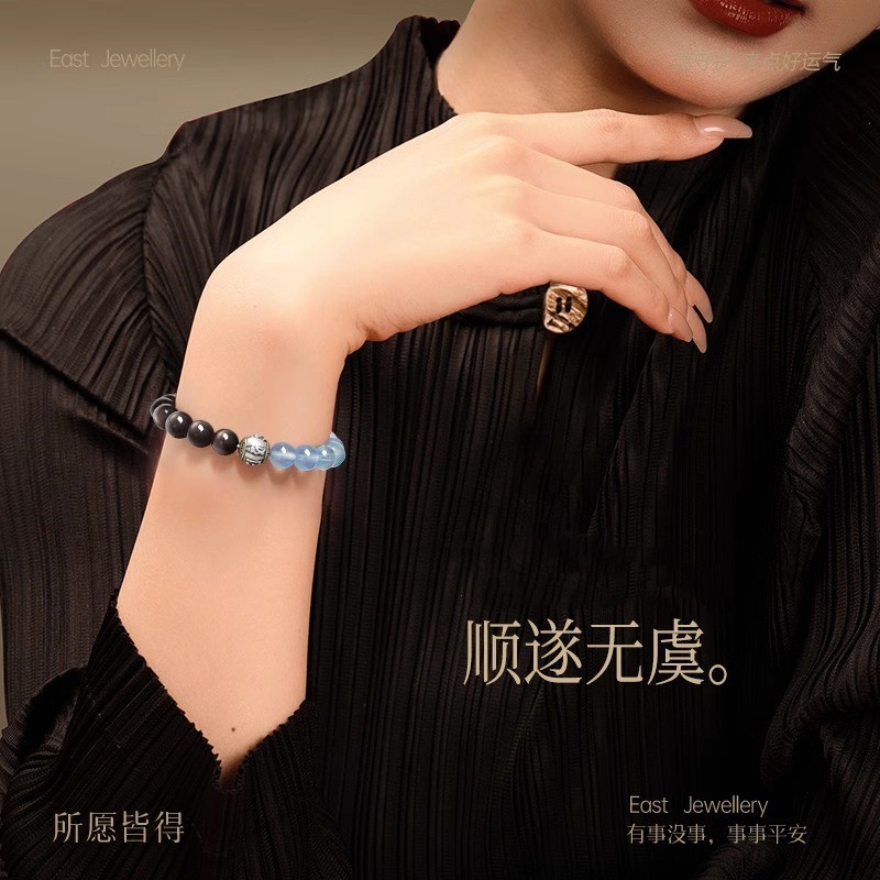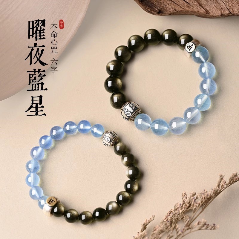灵岩天然海蓝宝本命佛手串男女水晶手链补水金曜石蛇年本命年礼物