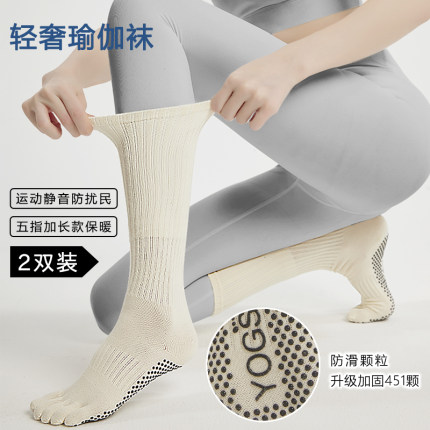 长筒瑜伽袜子防滑专业女五指袜普拉提袜子中筒压力小腿袜秋冬运动