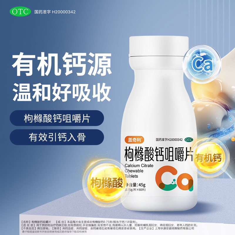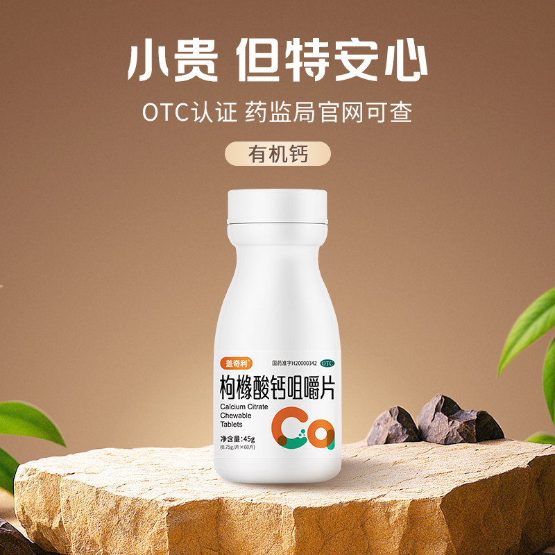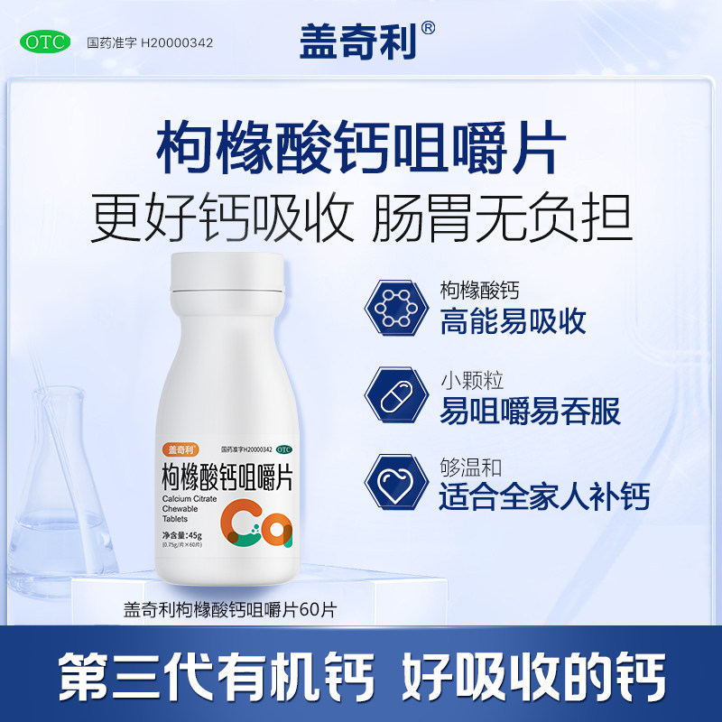【盖奇利】枸橼酸钙咀嚼片0.75g*60片*1瓶/盒