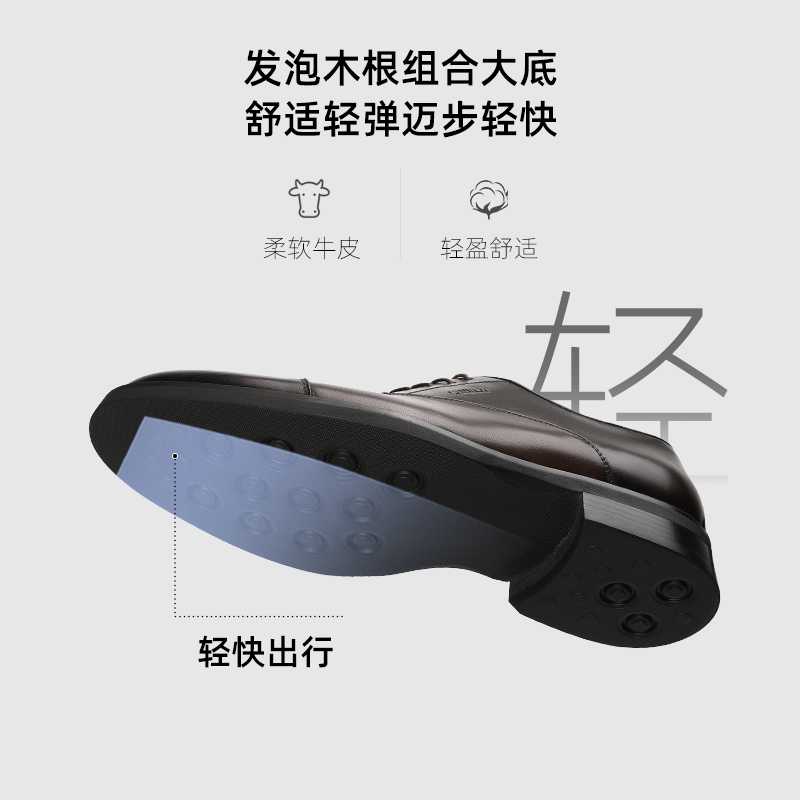 金利来男鞋官方正品秋冬新款棕色商务皮鞋男士三接头真皮增高婚鞋