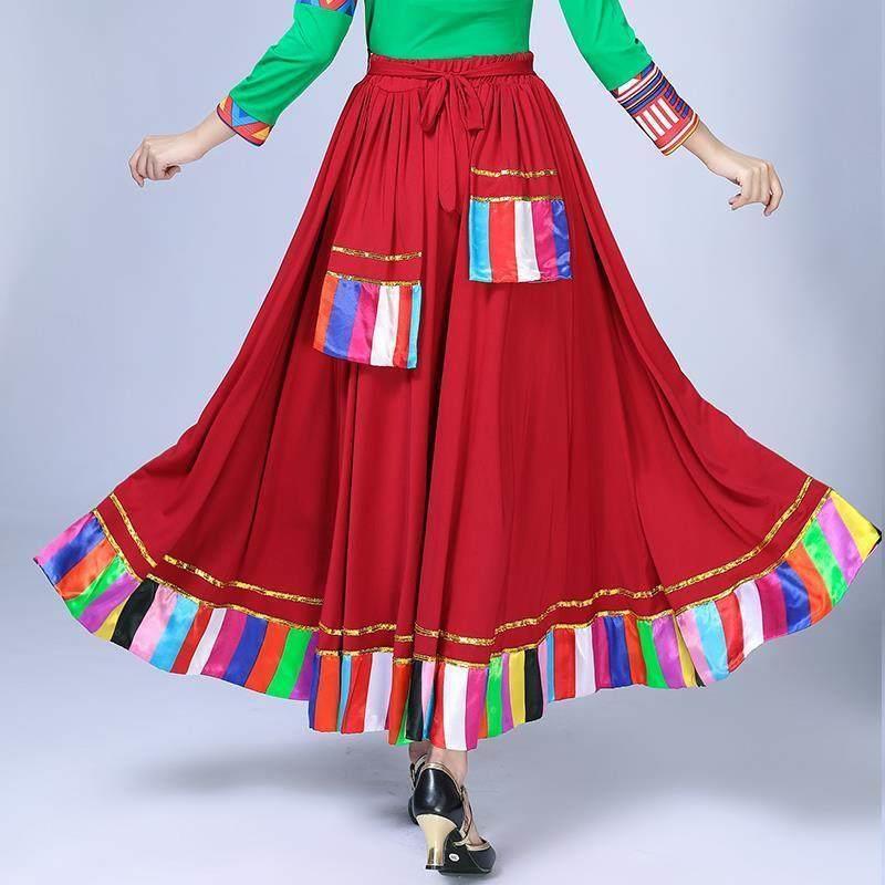 23新品藏族广场舞半身裙藏族舞蹈演出服装女藏式练功大摆裙藏舞练