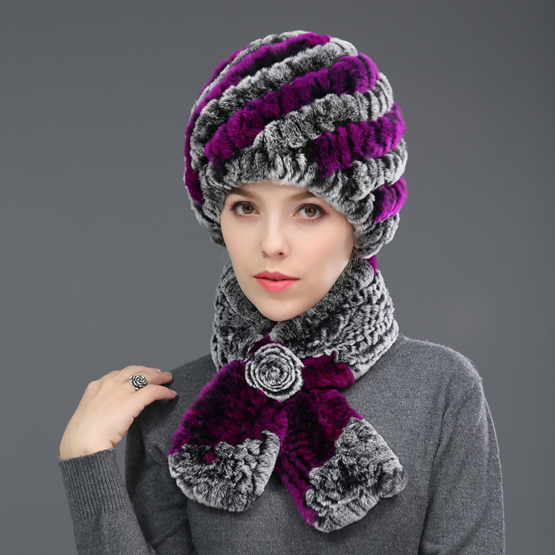 中老年獭兔毛帽子女秋冬季保暖老人奶奶护耳皮草妈妈洋气毛线围巾