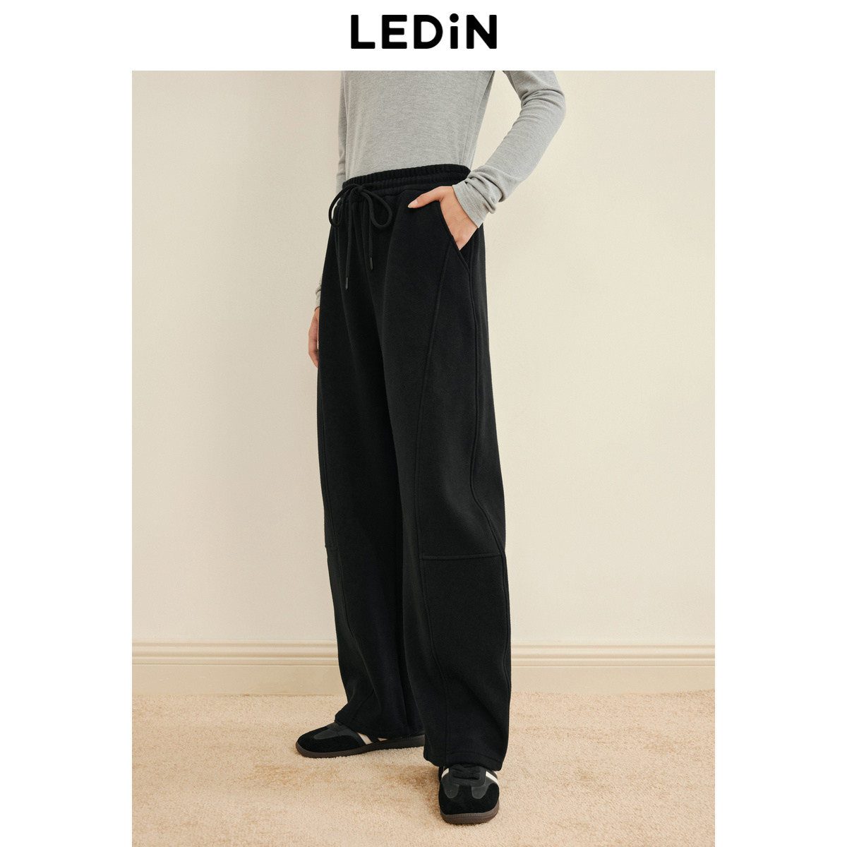 乐町针织香蕉裤新款冬季休闲裤韩系阔腿裤百搭高腰加绒裤子