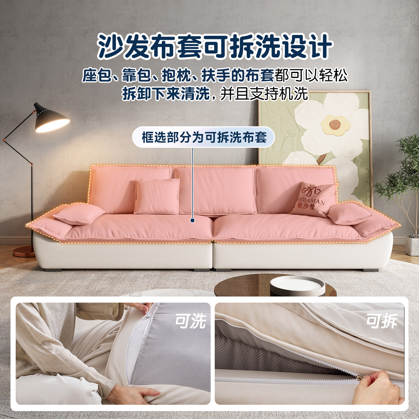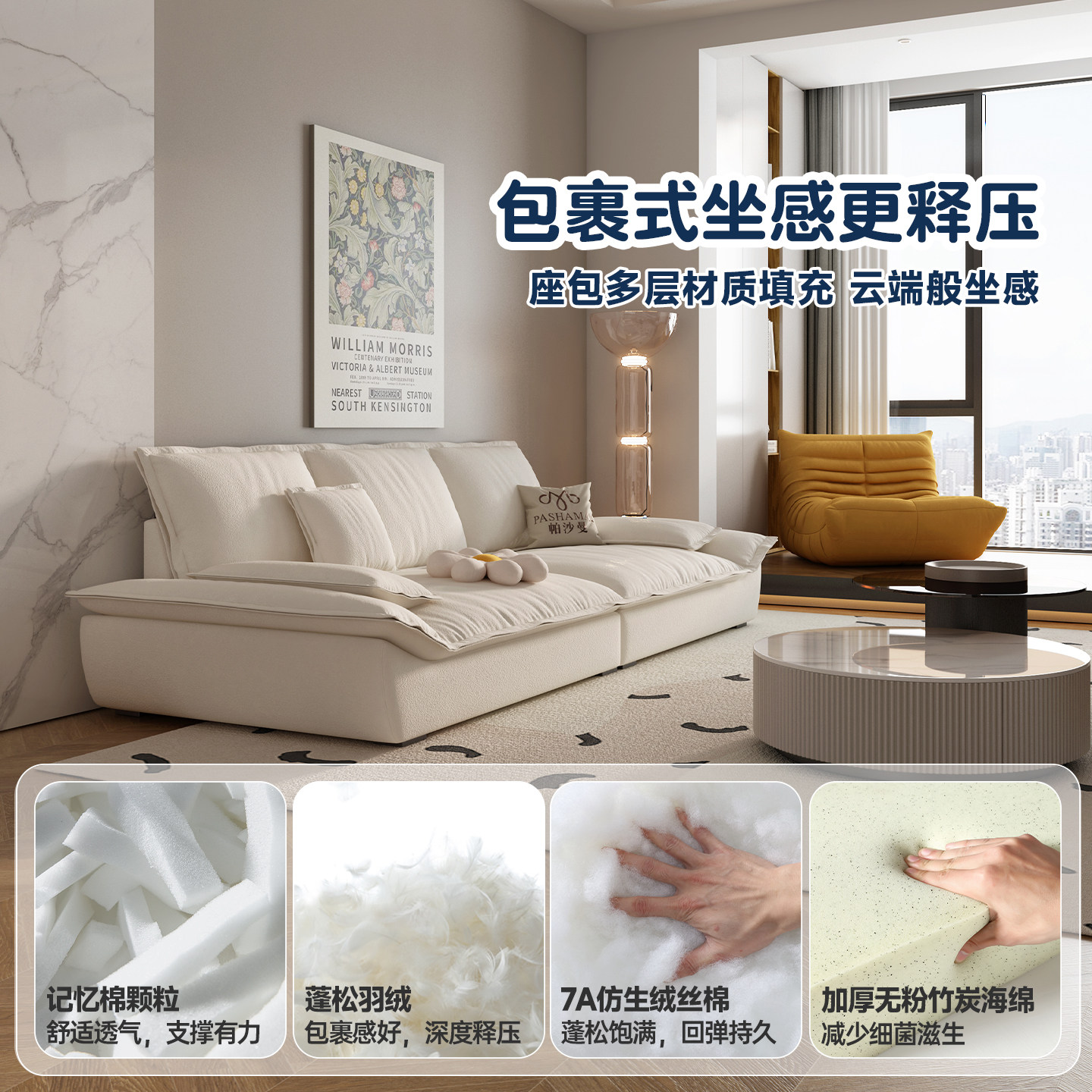 帕沙曼 帆船沙发小户型意式极简约现代绒布猫抓布艺可拆洗奶油风
