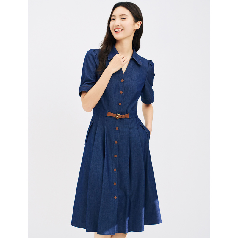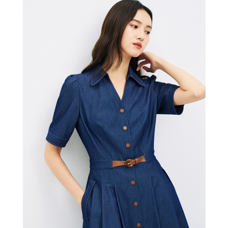 ELSEWHERE珂思【商场同款】衬衫式牛仔连衣裙女装秋季新款
