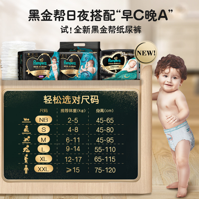 帮宝适纸尿裤奢宠黑金帮S82片新生儿蚕丝超薄尿不湿非拉拉裤干爽