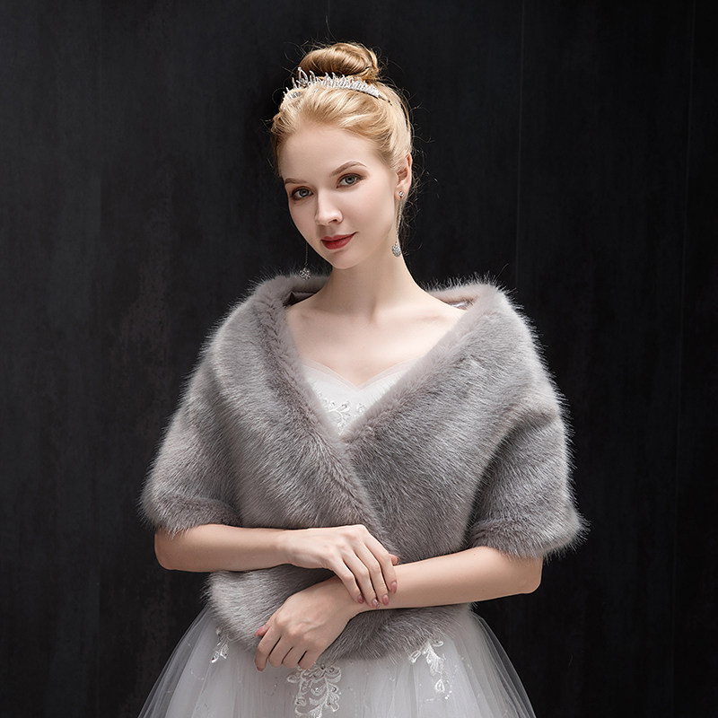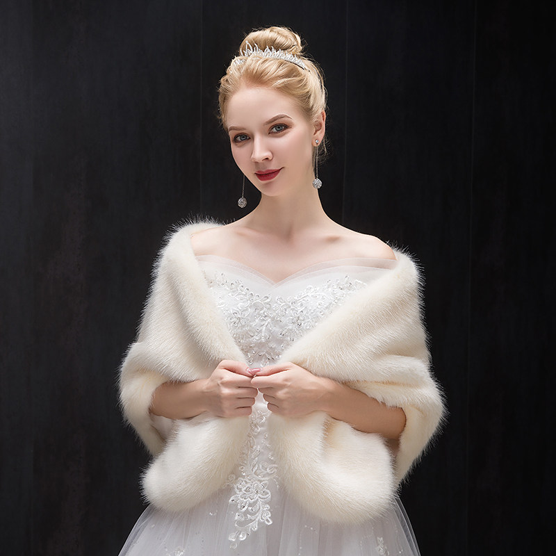 新娘宴会保暖斗篷白色婚礼毛披肩