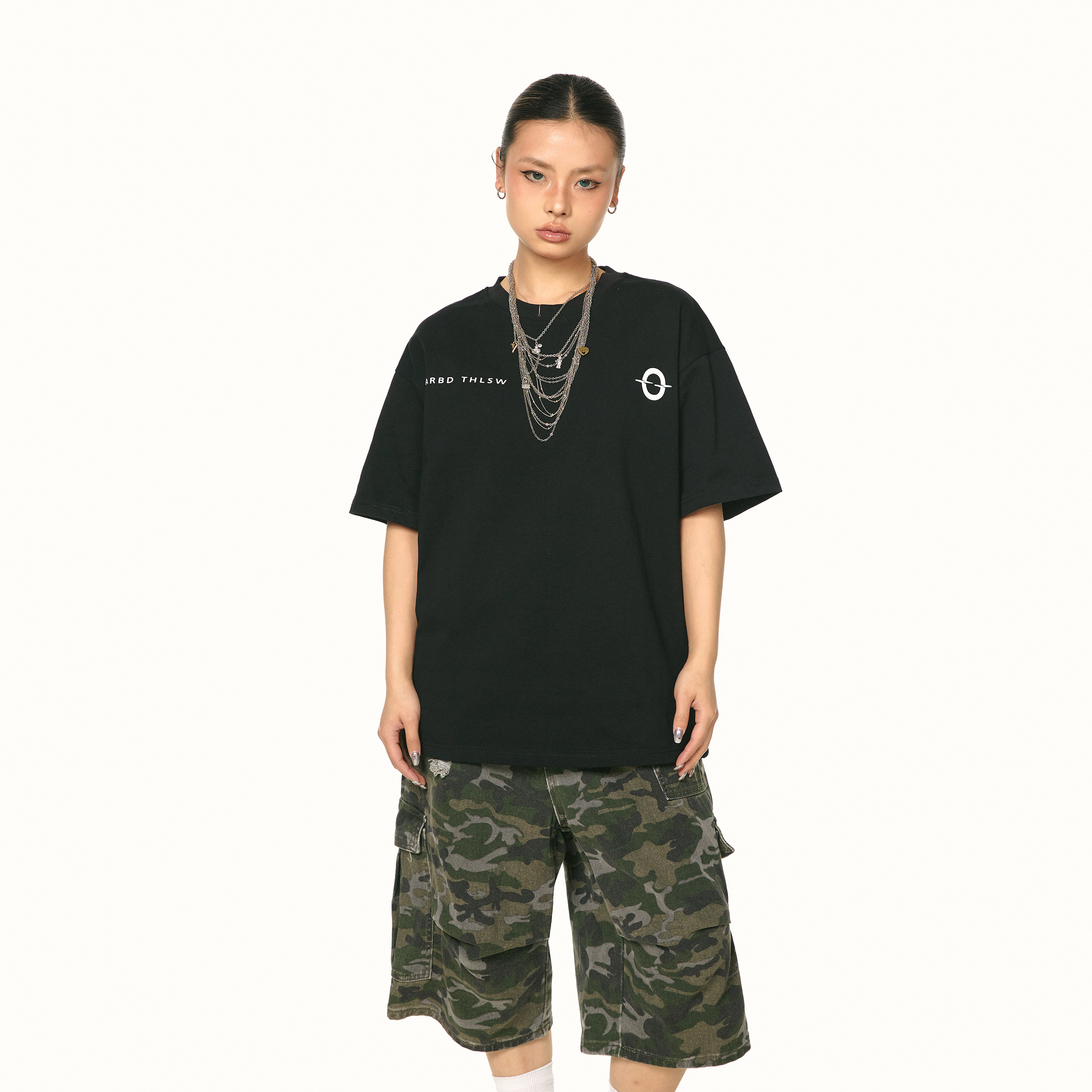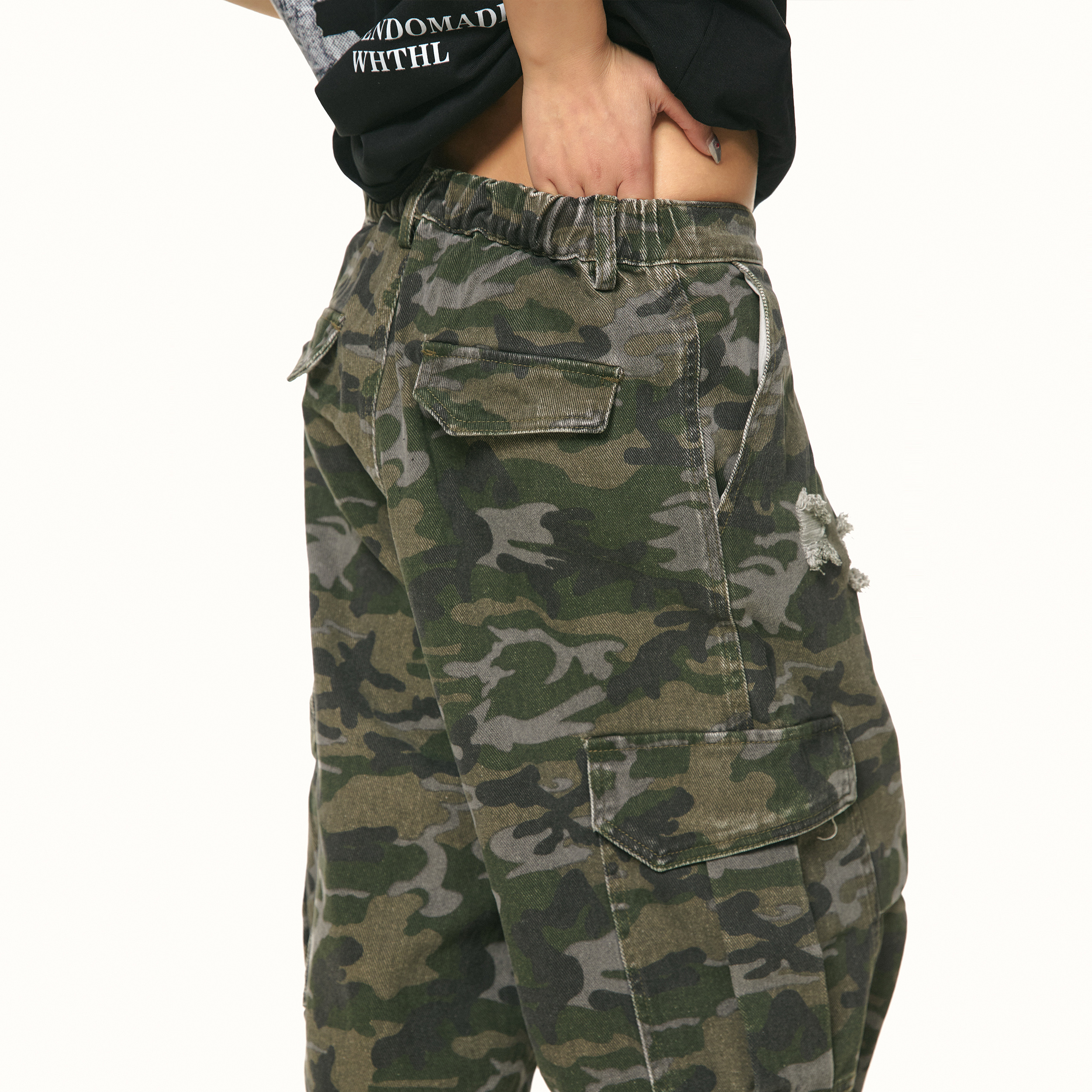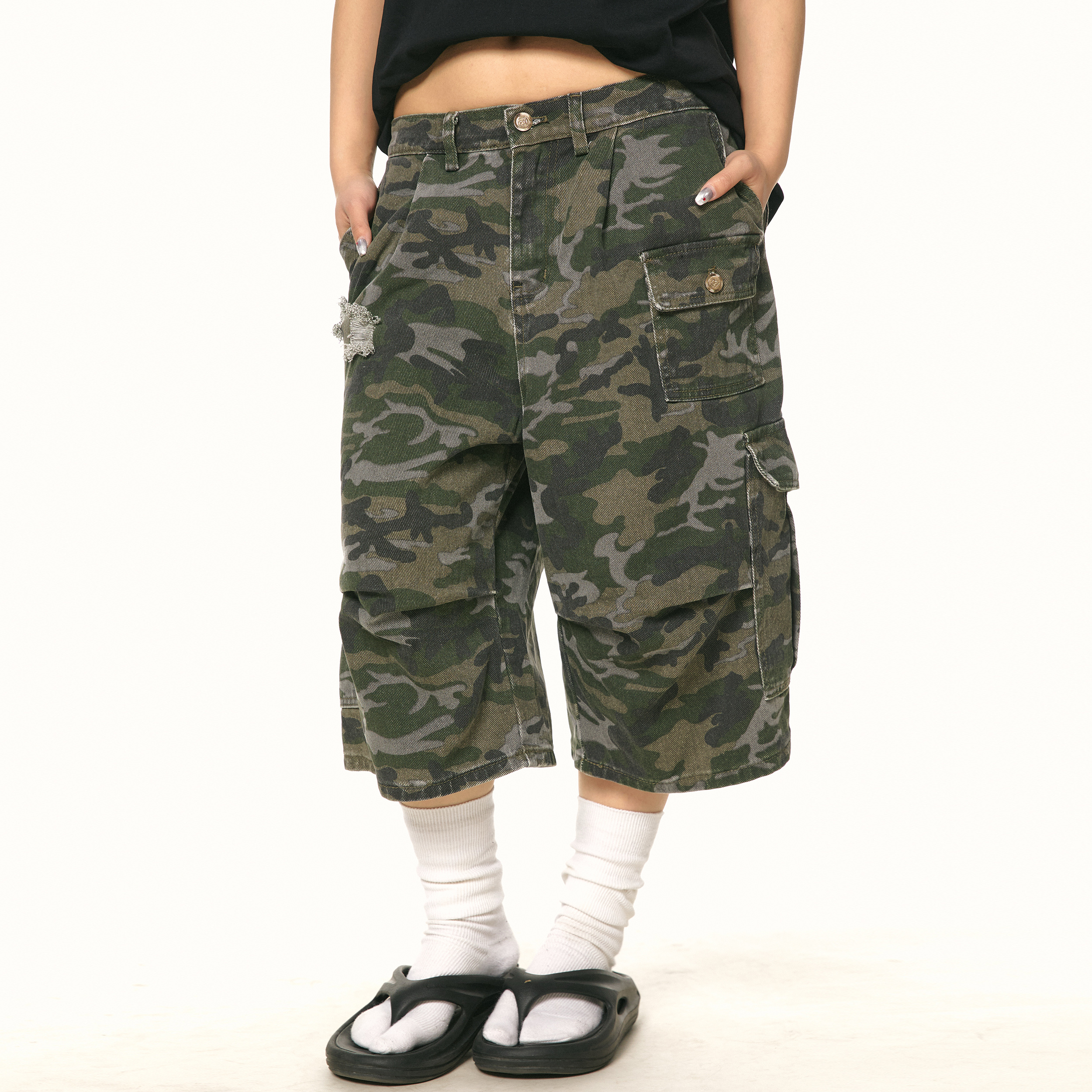 BLACKBB美式迷彩工装短裤男女宽松复古痞帅阔腿七分裤直筒中裤夏