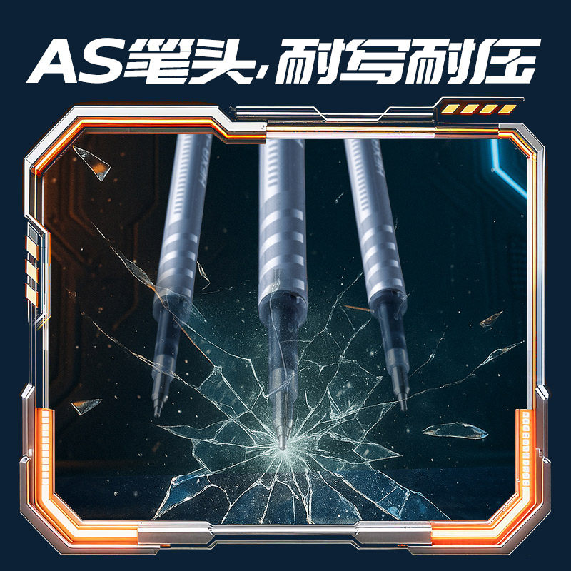 得力按动替芯AS头六边形舰队战士蓄能站中性笔刷题笔用笔芯黑色0.5mm中性笔芯按压式学生用考试黑笔芯SS025