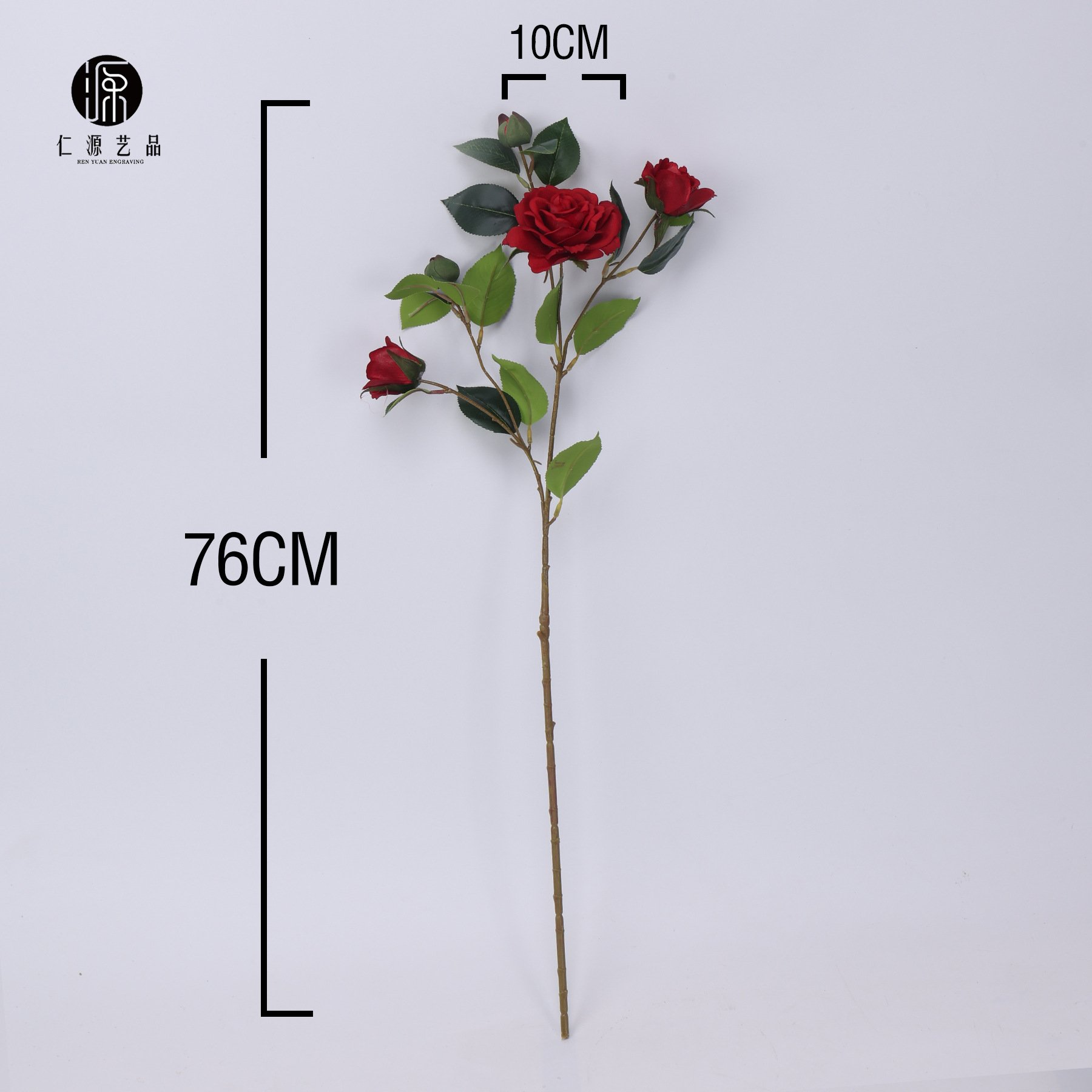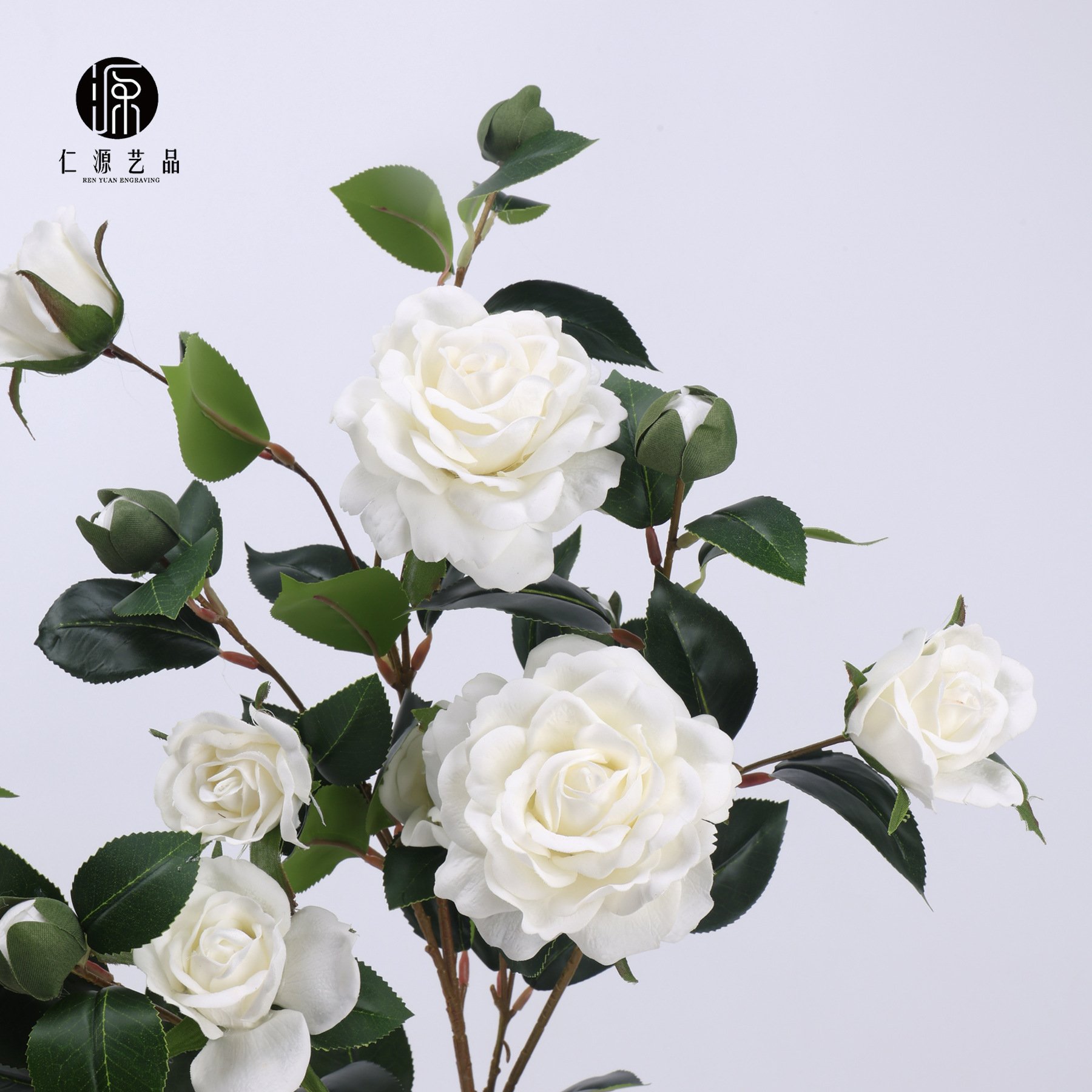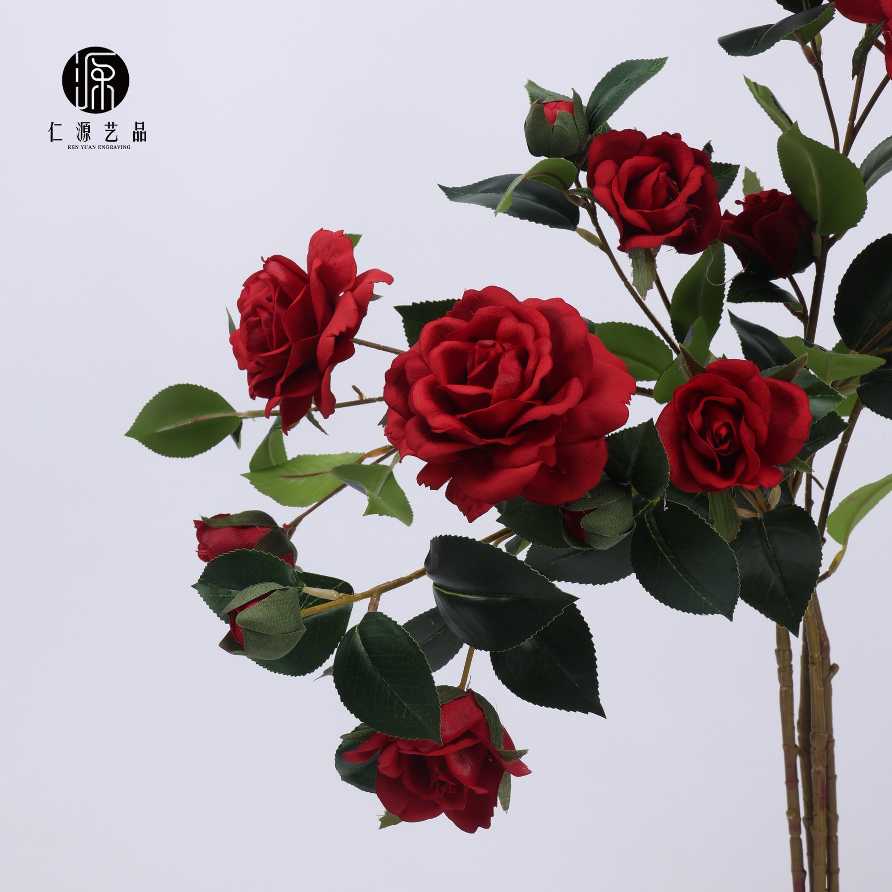 工厂直销 红白山茶花玫瑰花仿真花手感假花 客厅摆件家居插花配材