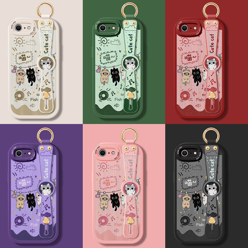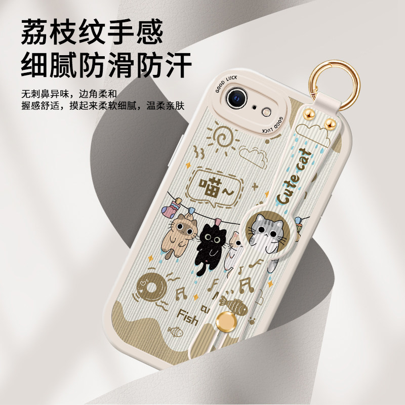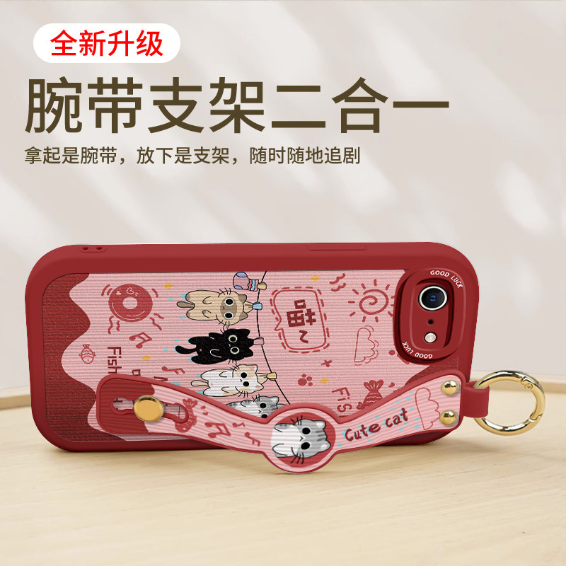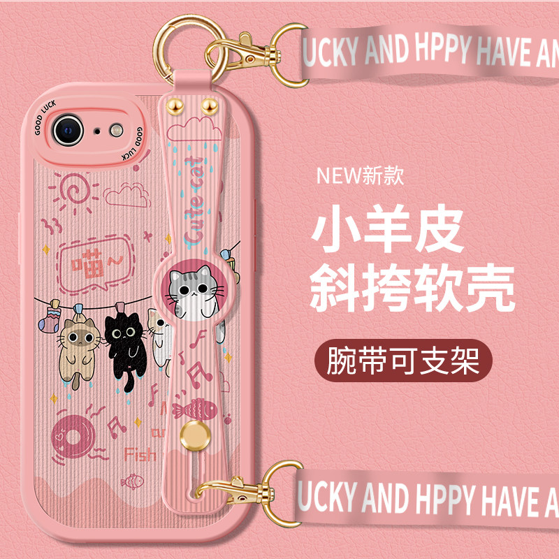 苹果8手机壳iPhone7Plus腕带斜挎6Splus挂绳6S小羊皮硅胶iPhoneSE3全包ipone背带支架ip六七八P防摔保护套女