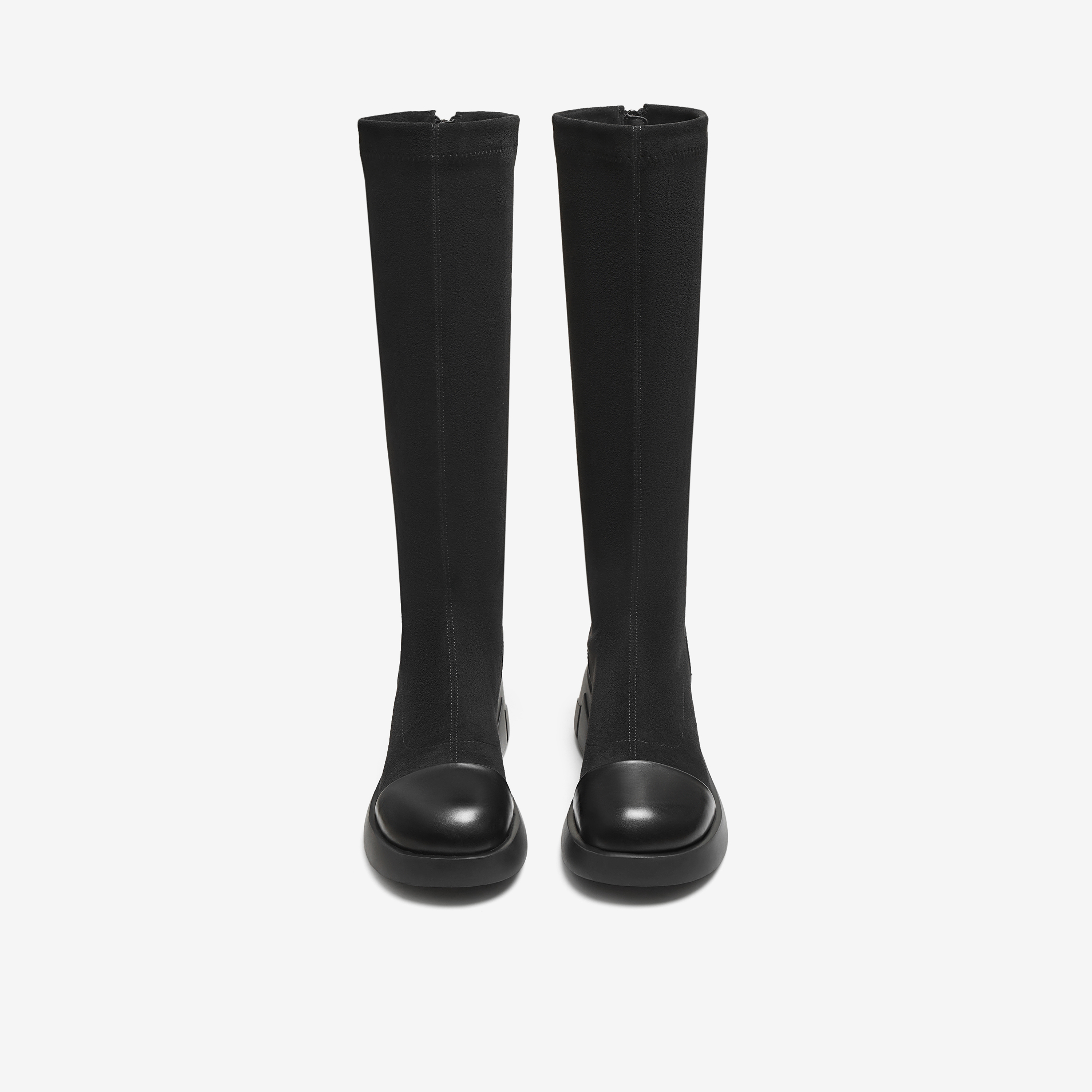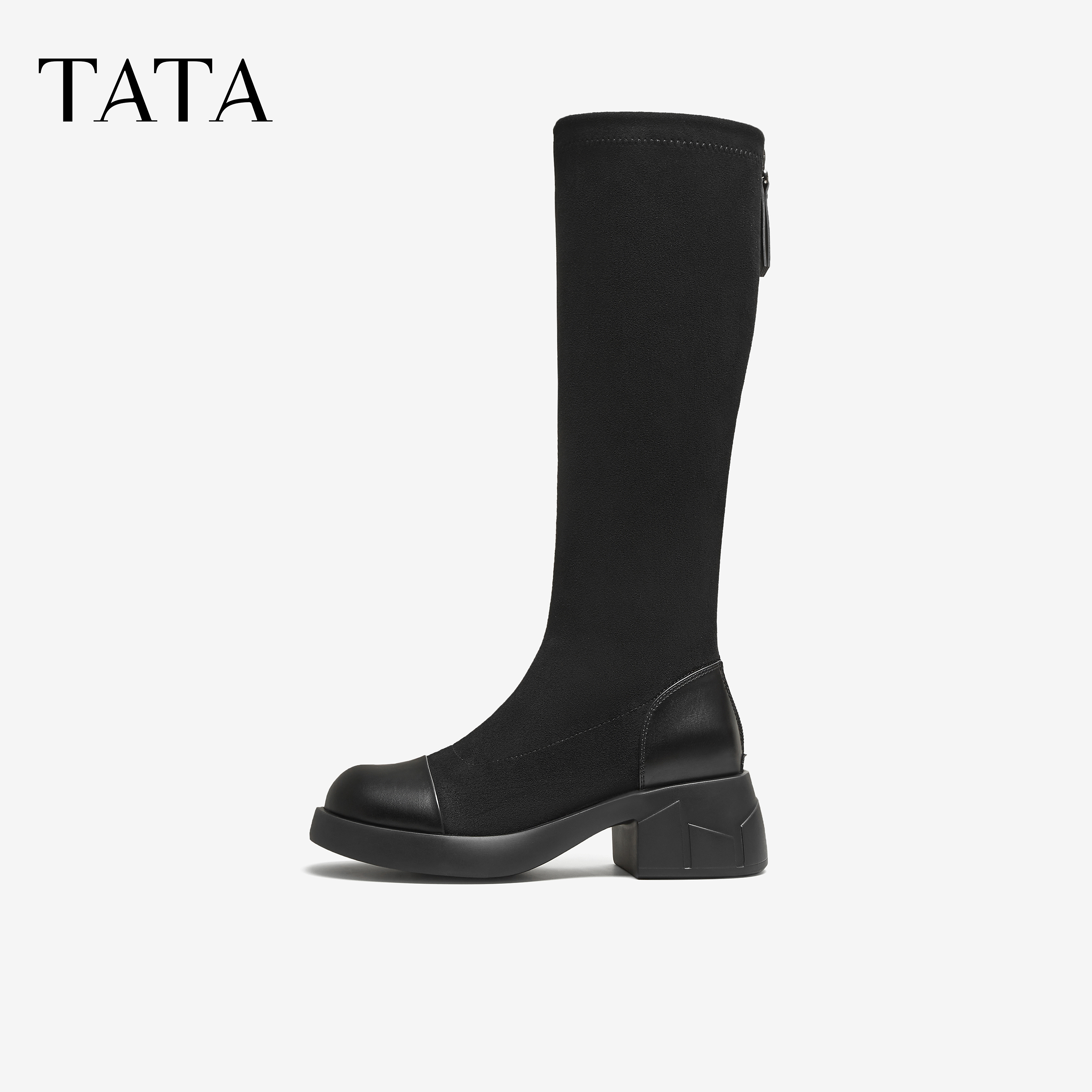 TATA他她弹力长靴女靴子长筒靴厚底粗跟黑色瘦瘦靴高筒靴CE601DG5