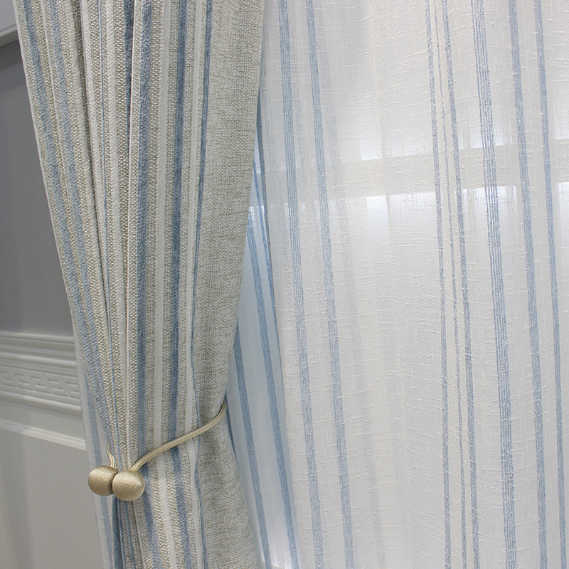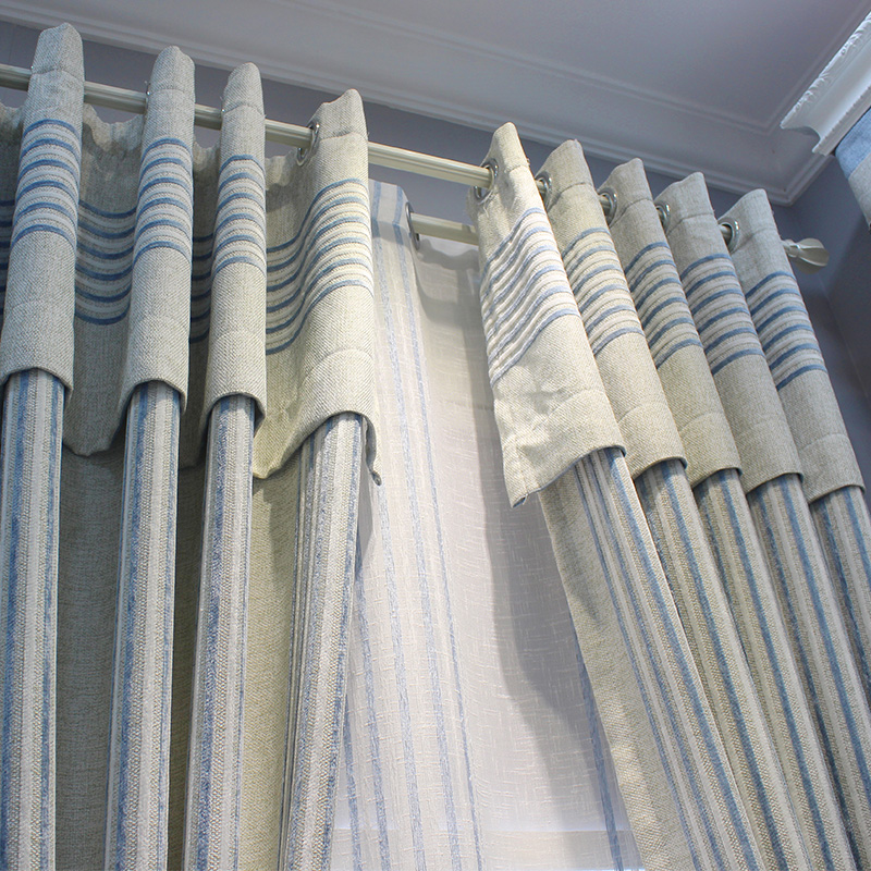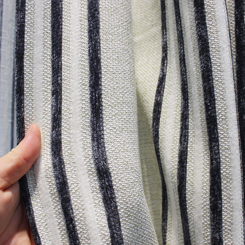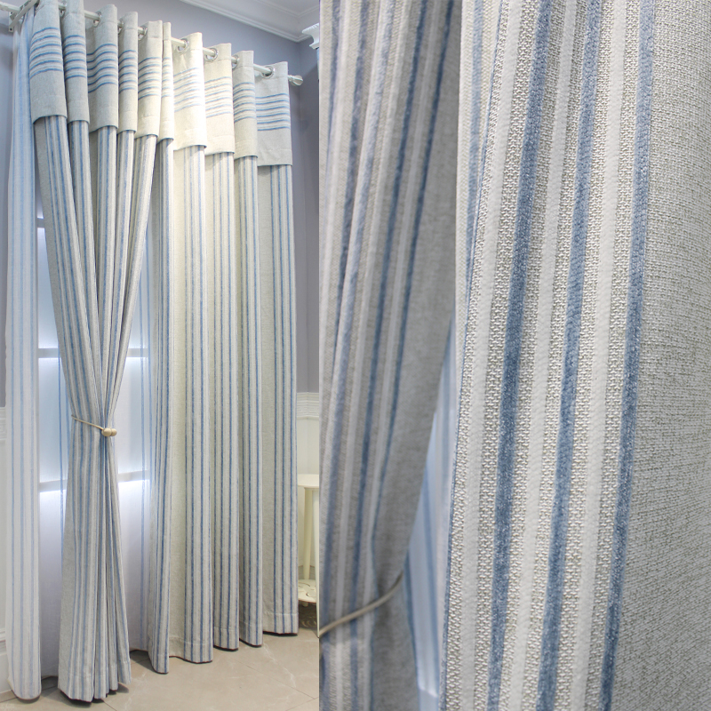 极速现代简约日式客厅条纹雪尼尔亚麻遮光卧室定T制飘窗落地窗帘