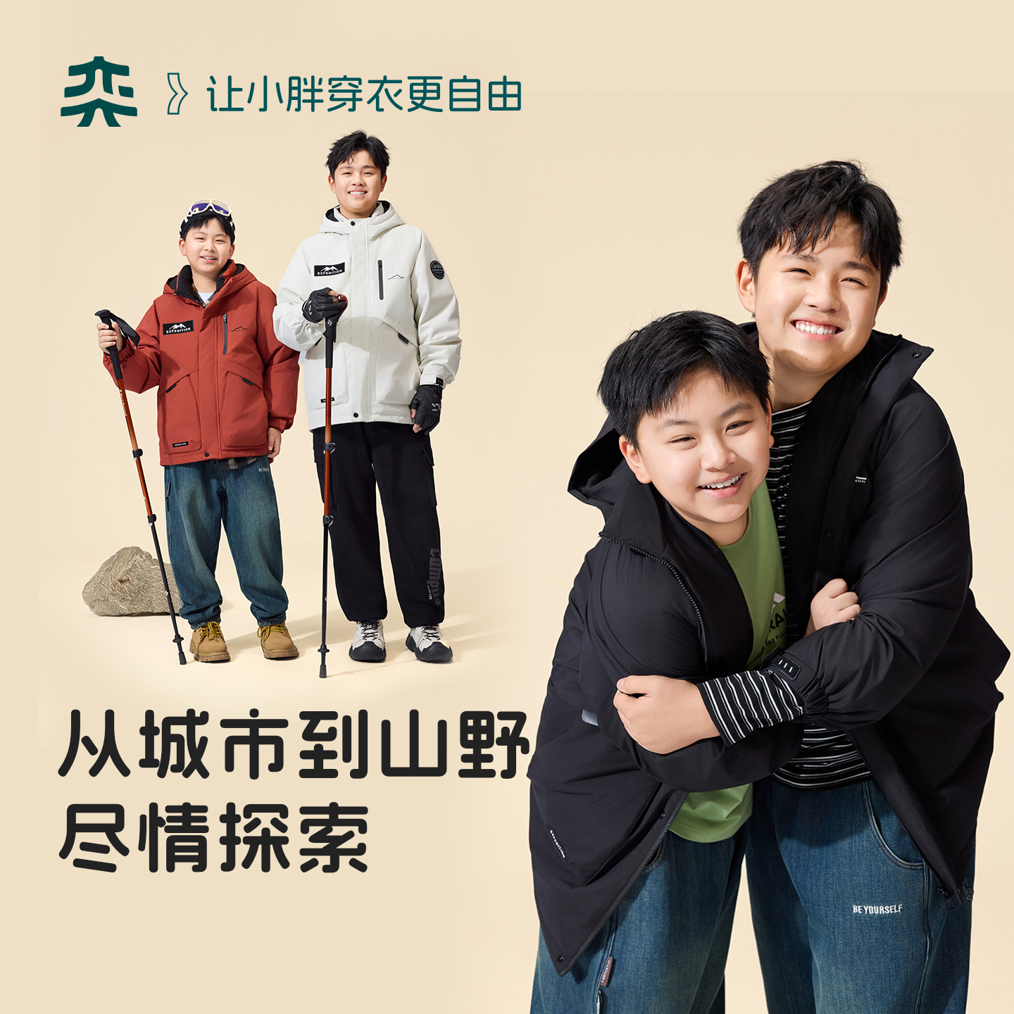 【Air轻户外工装羽绒】奕时代胖男童羽绒服中大童连帽外套90鸭绒