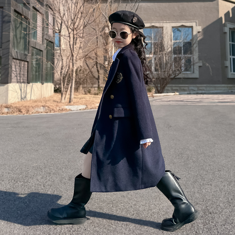女童毛呢外套2025新款春季学院风呢子大衣韩版中大童长款儿童风衣