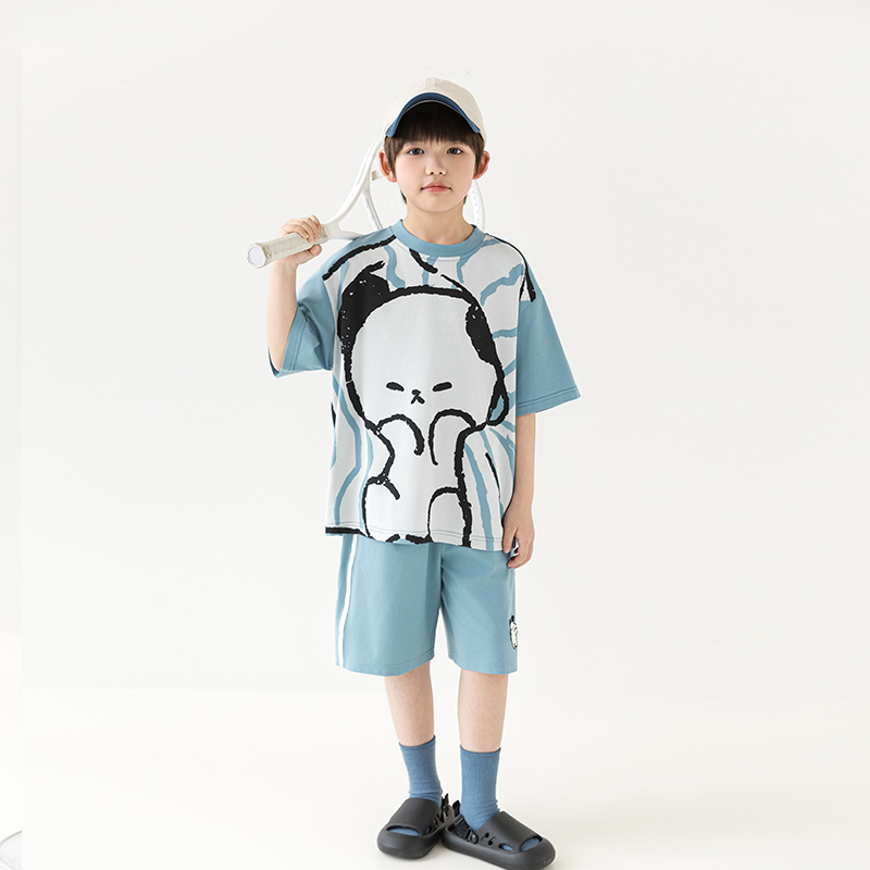 oddtails男童短袖T恤洋气2025新款夏装儿童印花半袖大童休闲上衣