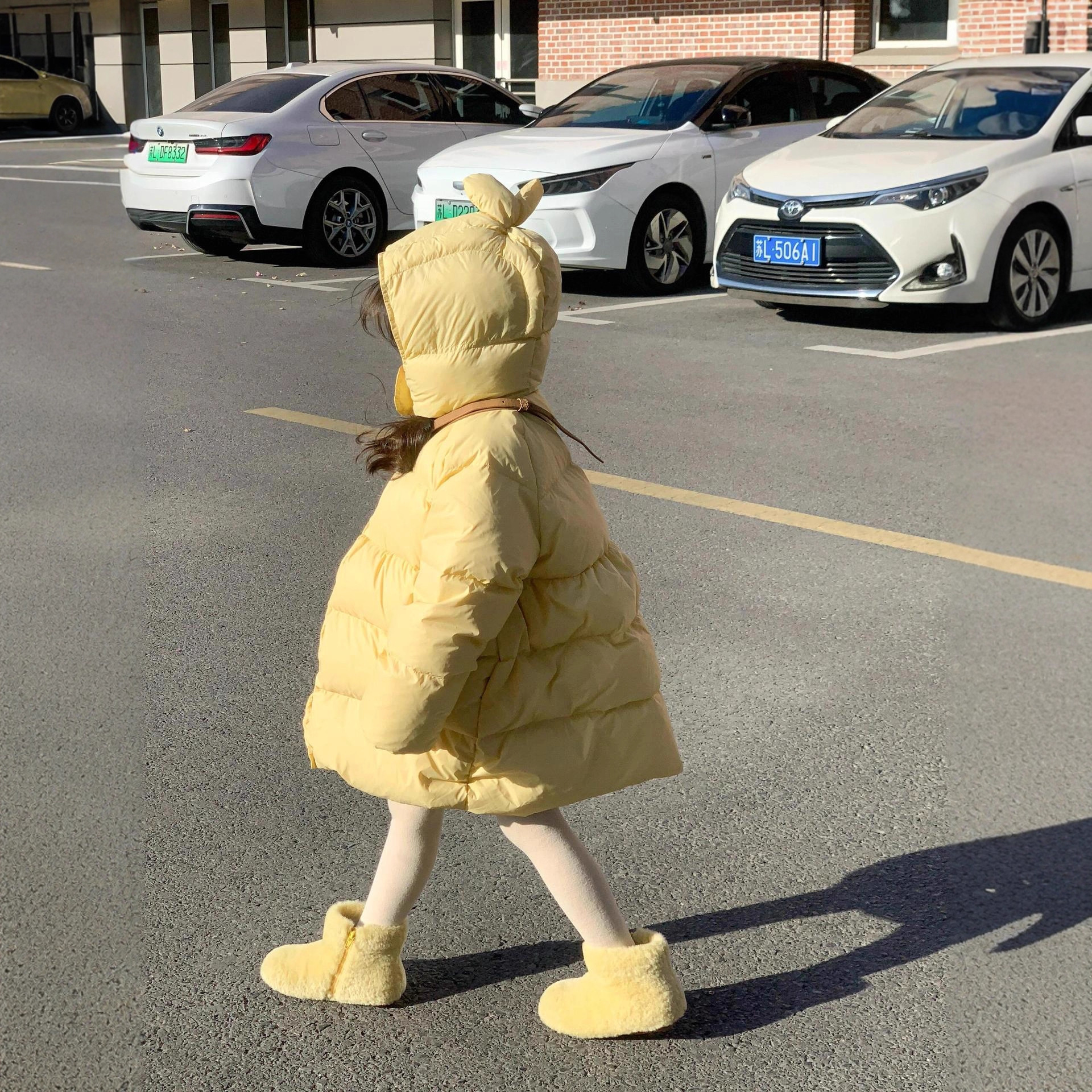 TOTObaby冬装新款女童小鸡黄连帽棉衣可爱卡通造型中长款棉服外套