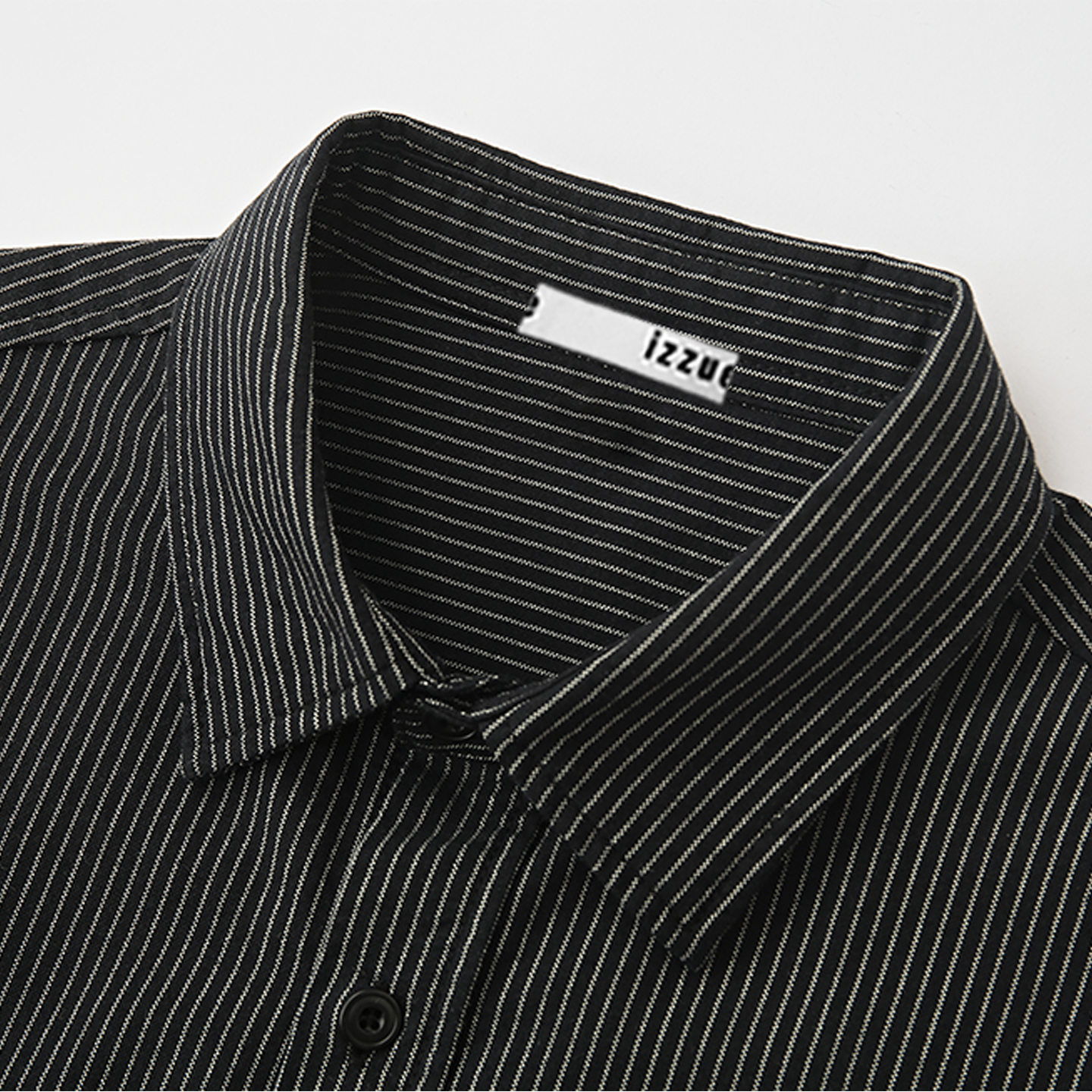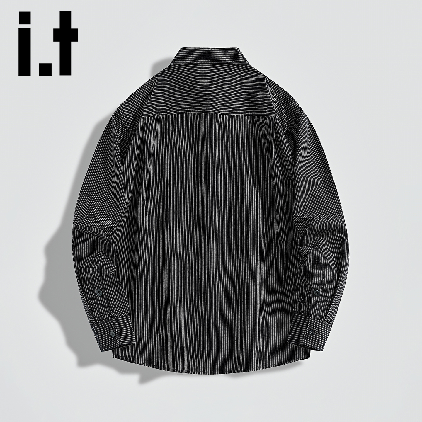 【纯棉耐穿】it izzue 条纹翻领长袖衬衫男2025秋季日系复古衬衣Y