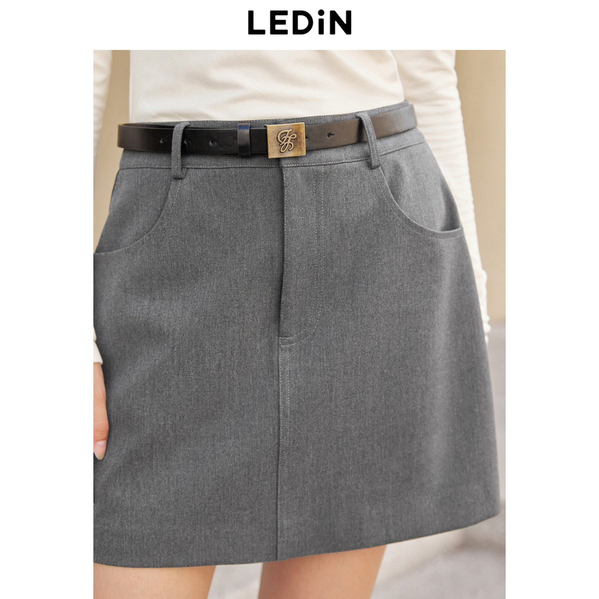 乐町韩系学院风半身裙冬季新款A字短裙格雷系基础灰色半身裙