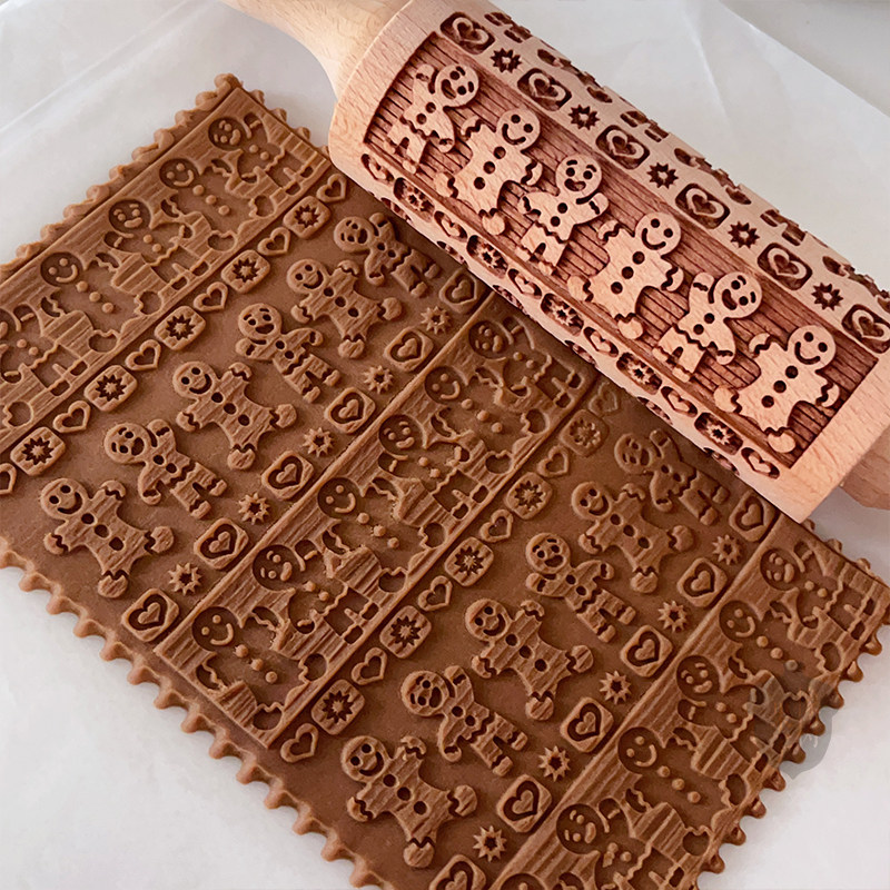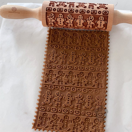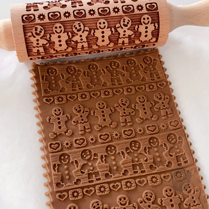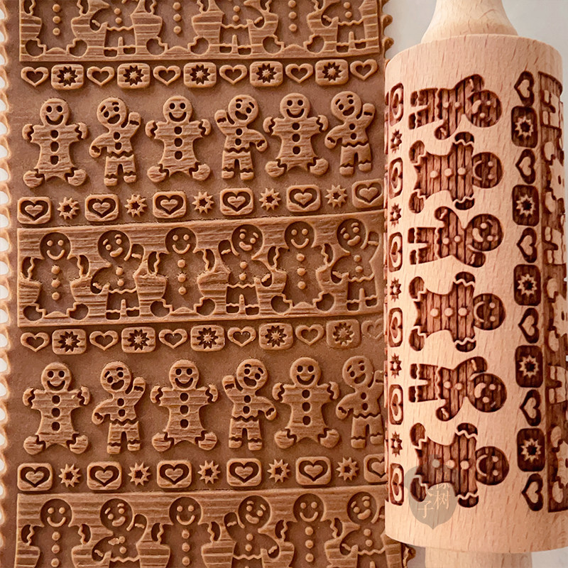 橡树果子日式卡通姜饼人擀面杖圣诞节立体饼干模馒头饼皮滚轮工具