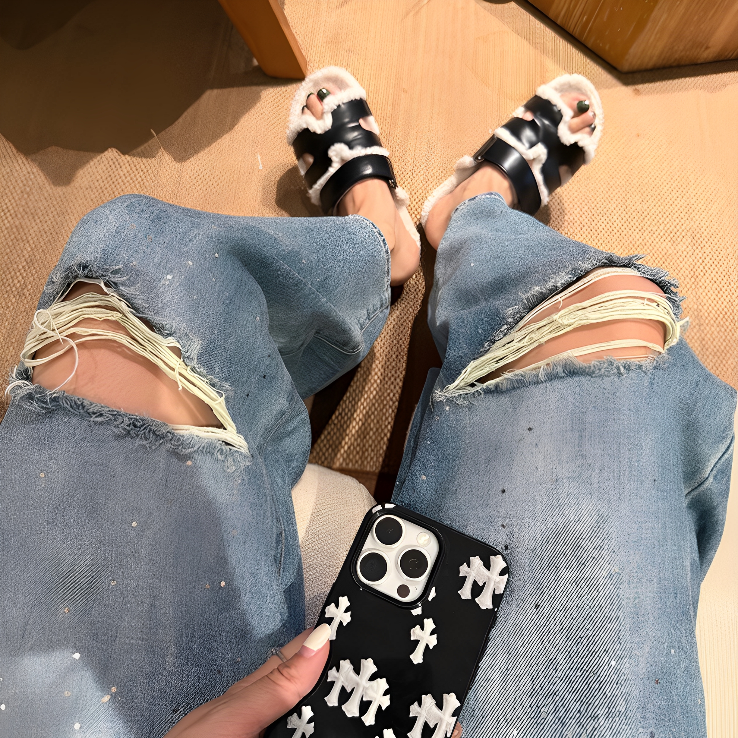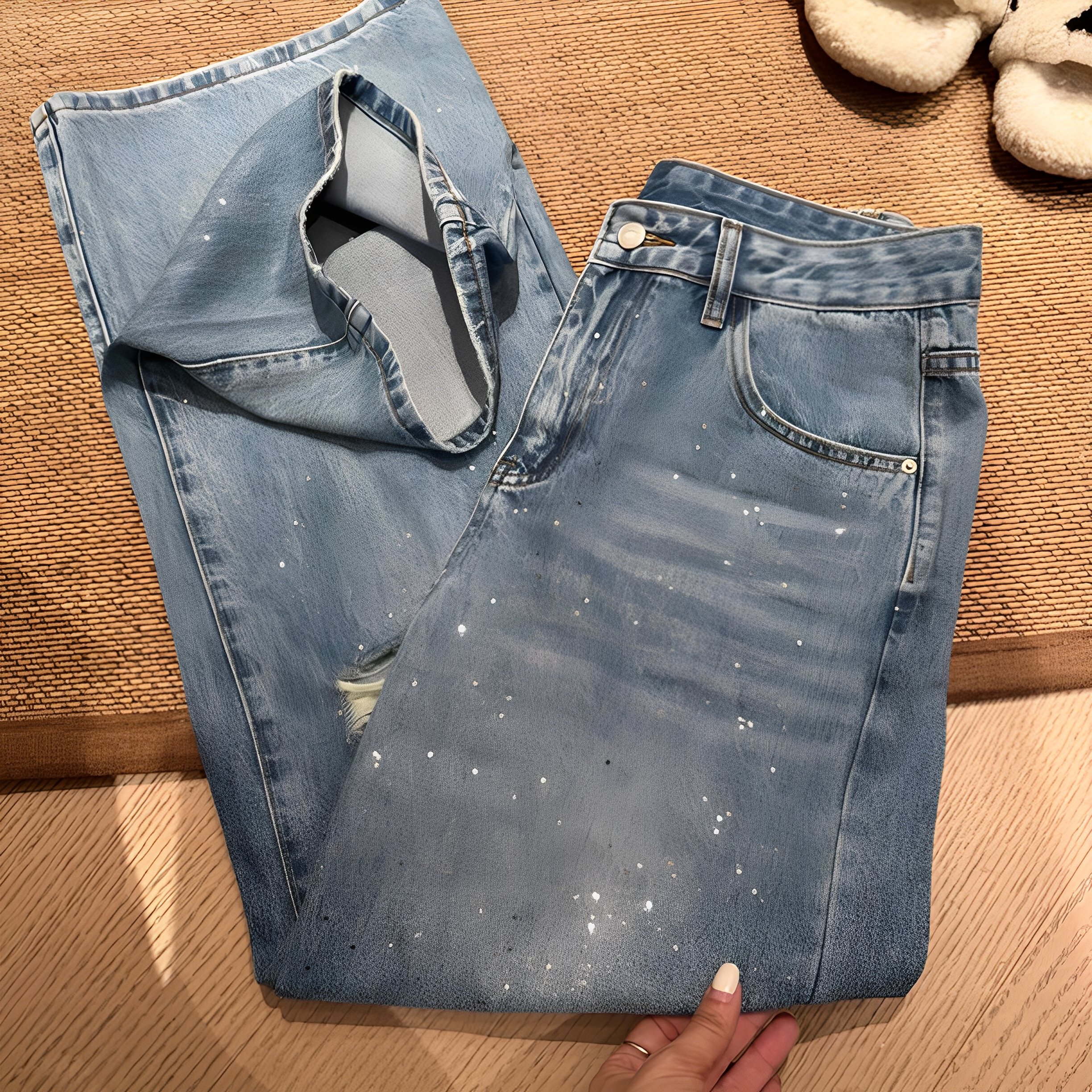 星空闪牛仔裤女春夏潮长裤破洞水洗可逅高级松弛感显瘦直筒拖地裤