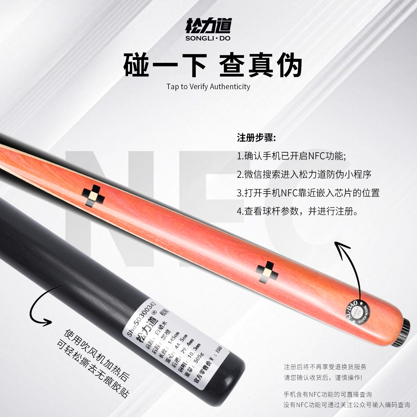 松力道鲁班系列台球杆通杆一体LC-023手工杆桌球杆小头杆黑八