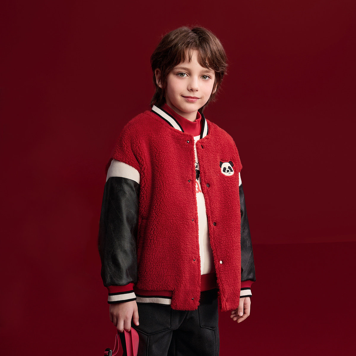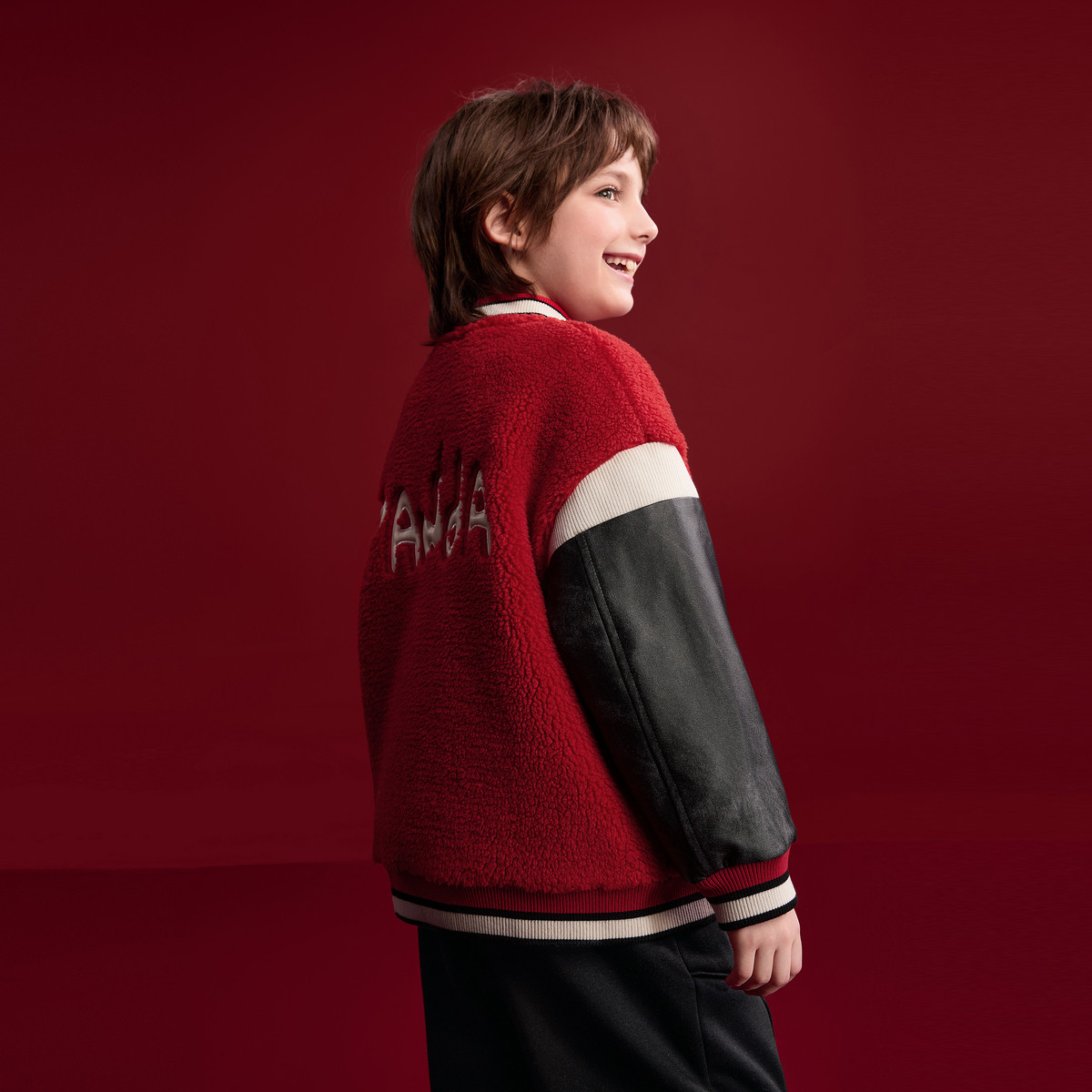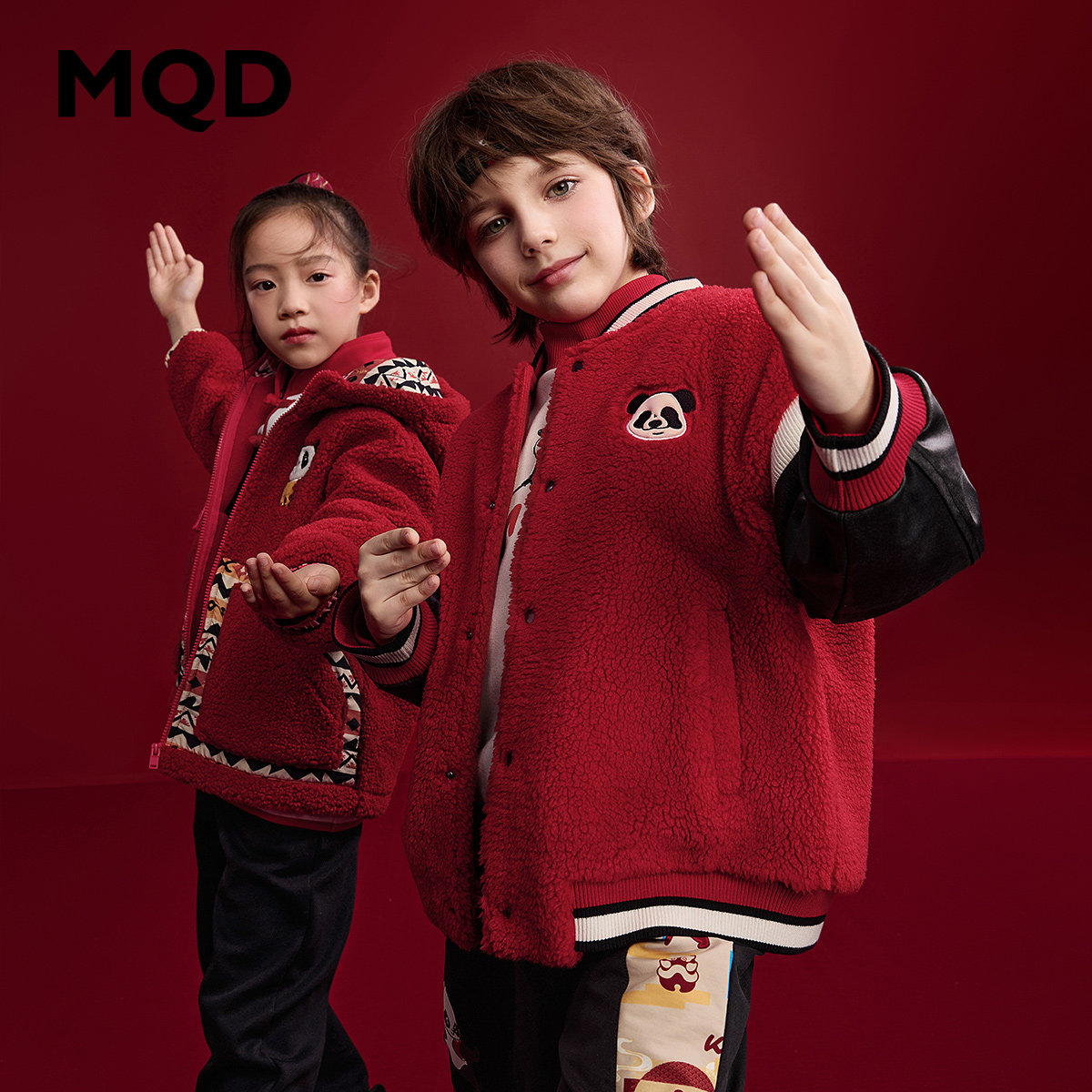 MQD儿童新年外套冬装新款棒球外套男童加厚红色上衣拜年服