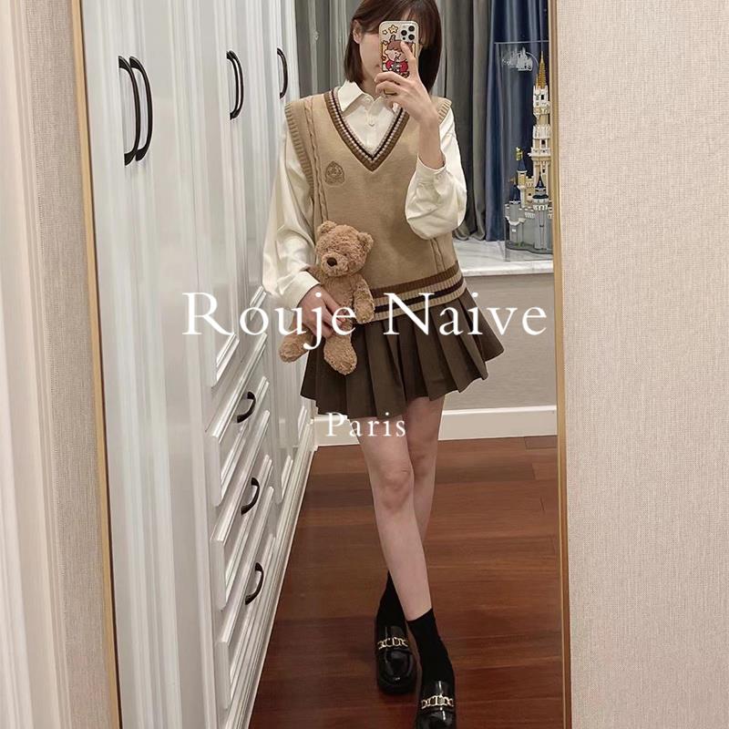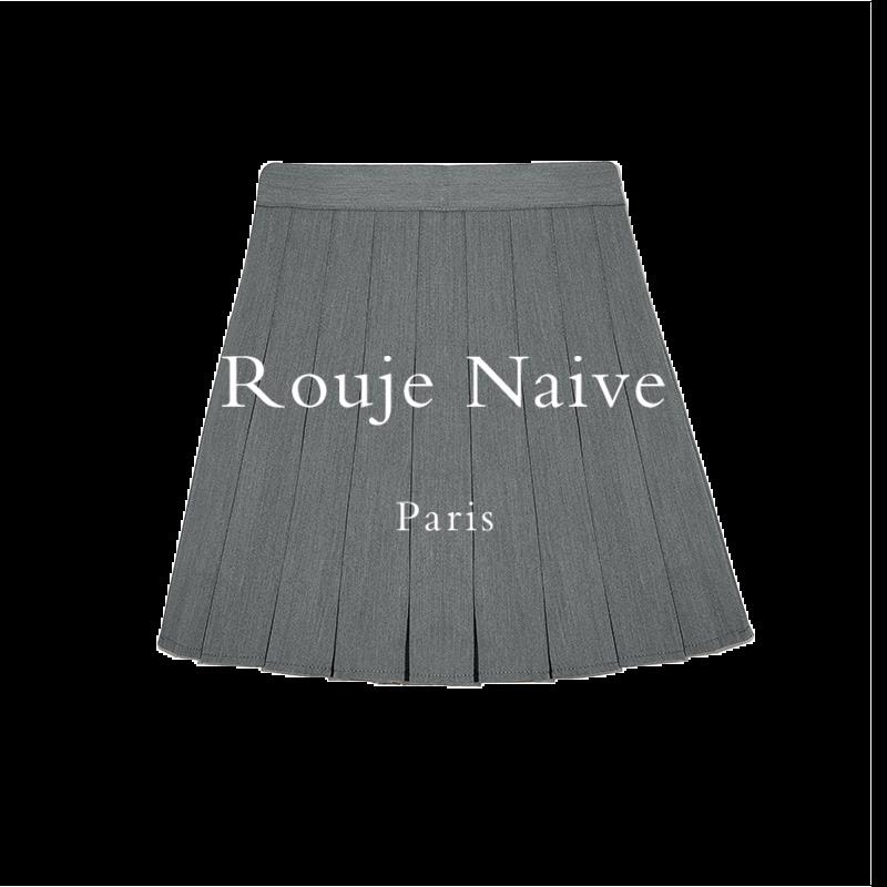 Rouje Naive灰色百褶裙女春夏a字显瘦半身裙子纯色复古学院风短裙
