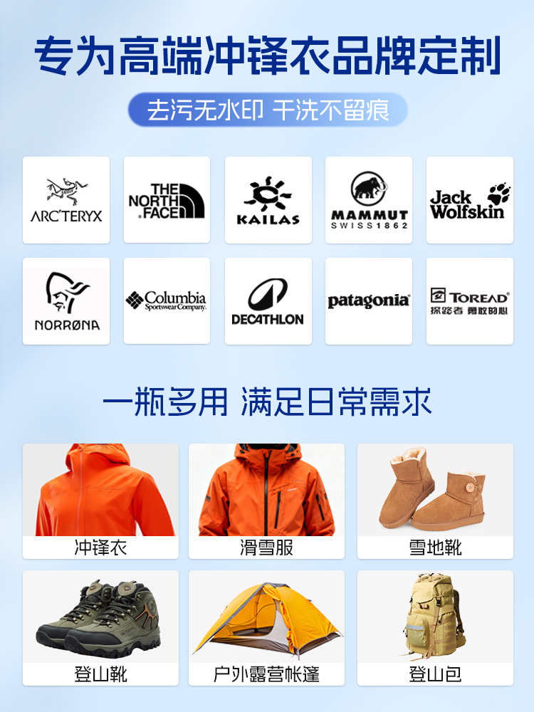 冲锋衣清洗剂专用涂层喷雾适用于骆驼始祖鸟修复洗涤中性干洗剂