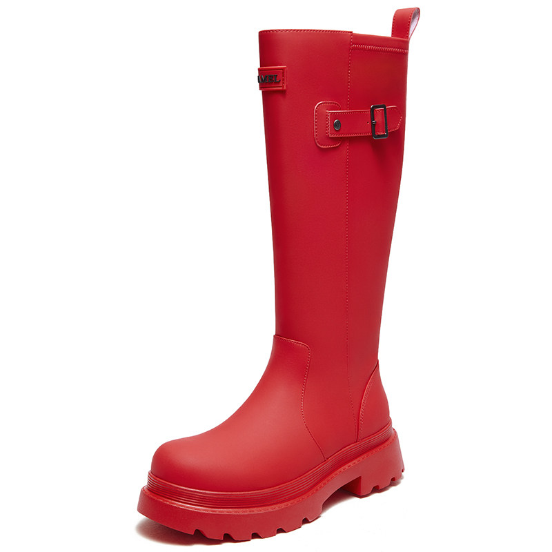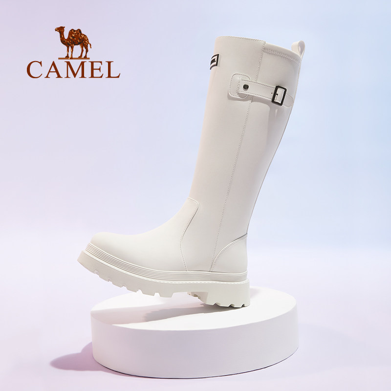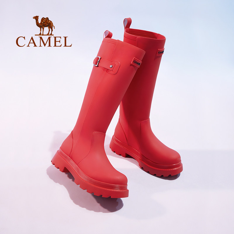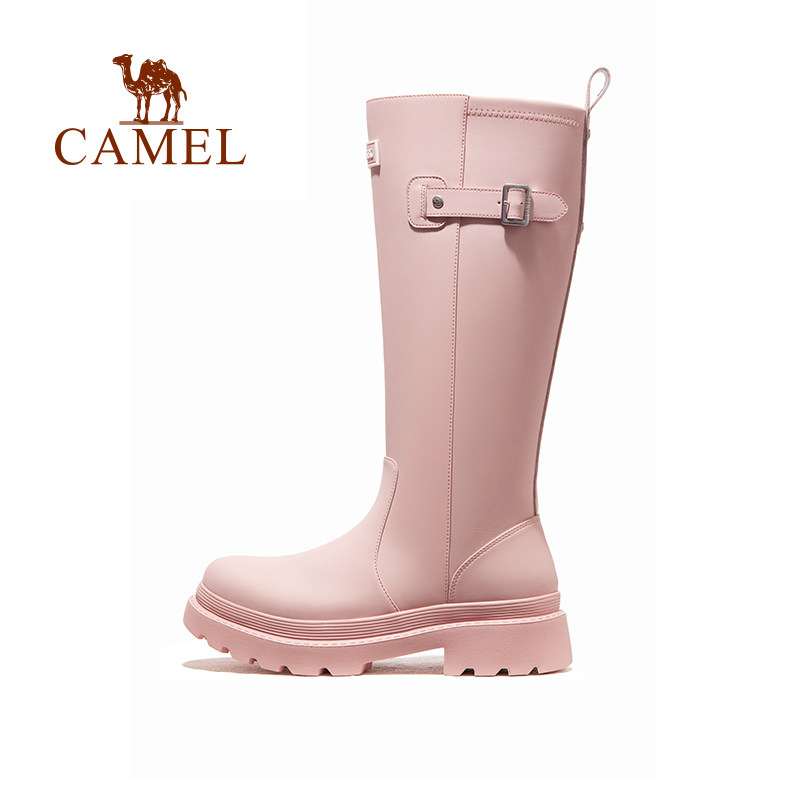 骆驼雨靴粉色战靴高颜值高筒雨鞋户外鞋涉水鞋子防水防滑长筒靴女