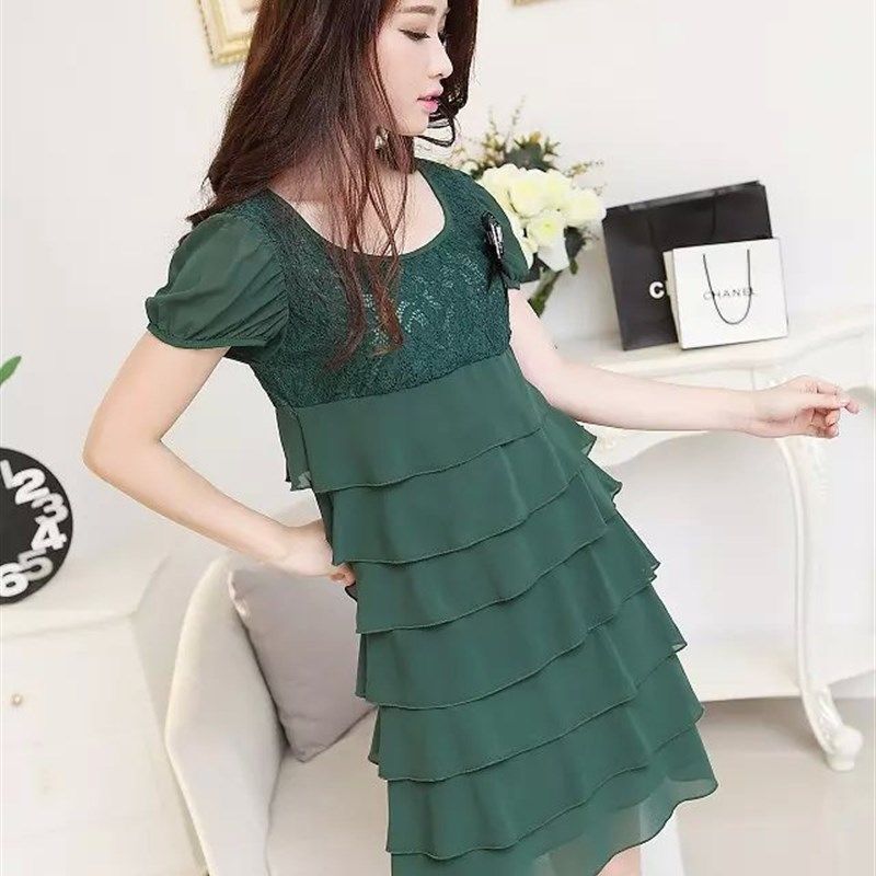 夏装2021雪纺连衣裙夏天蛋糕裙显瘦胖妹妹胖子加肥加大码女装胖mm