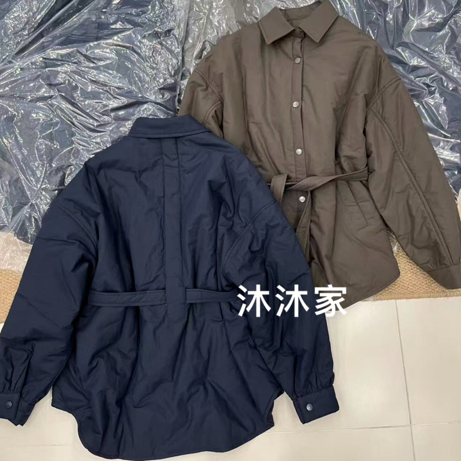 现货欧洲站2025秋季新款翻领洋气百搭系腰带宽松夹棉衬衫外套
