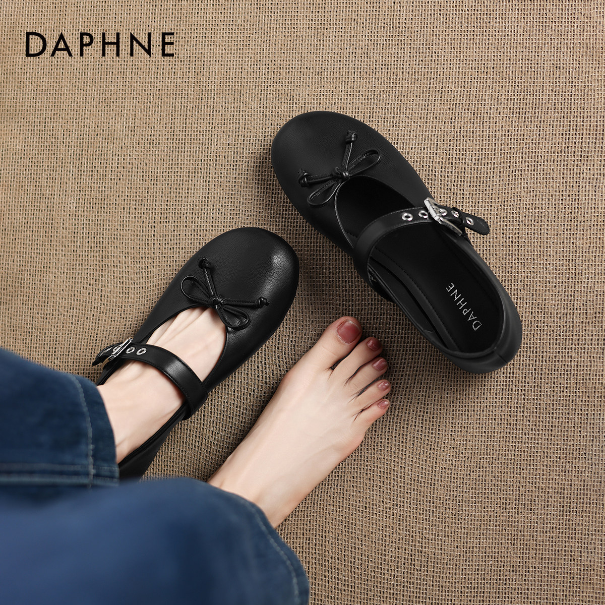达芙妮黑色浅口单鞋女2026春季一脚蹬玛丽珍鞋复古法式平底小皮鞋