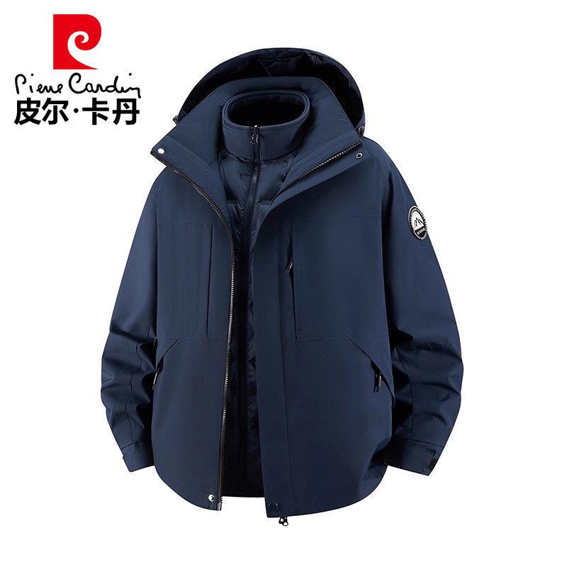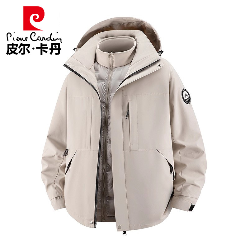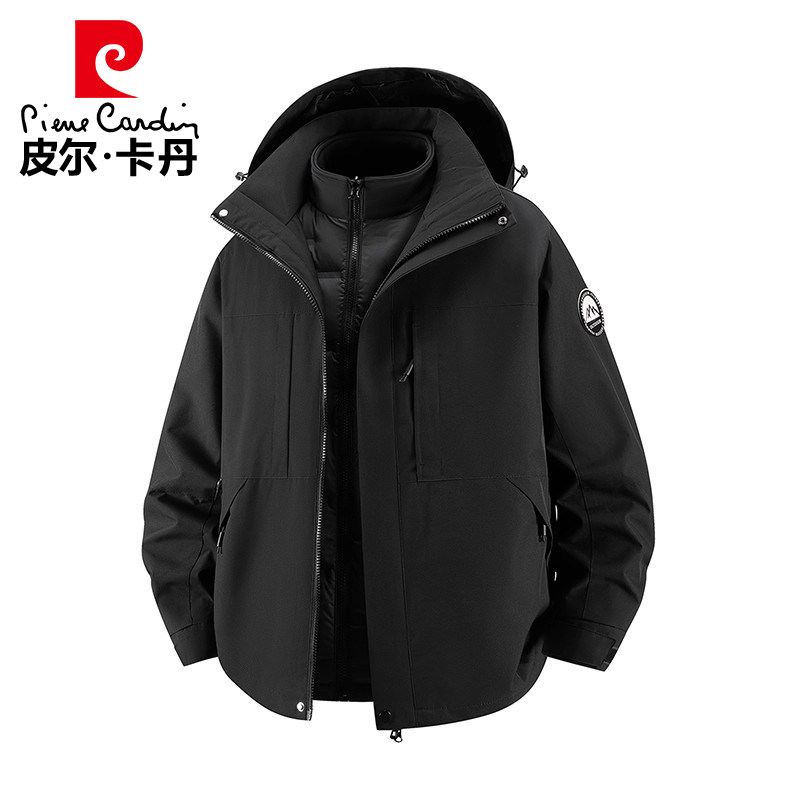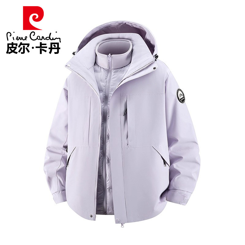 皮尔卡丹三合一男士羽绒服冬季新款羽绒内胆冲锋外套女士防风夹克