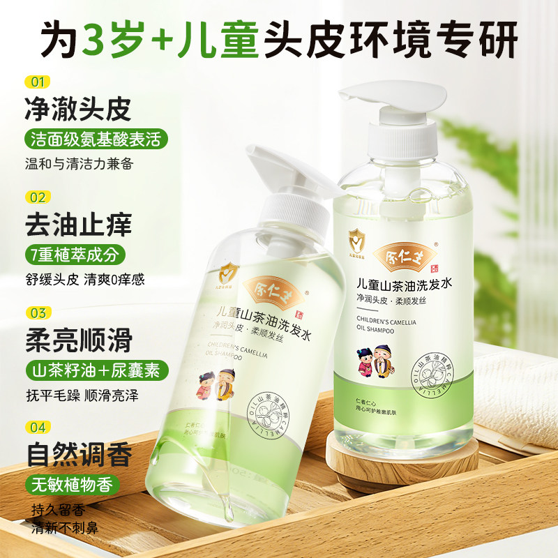 余仁生儿童洗发水3-6到12岁男女孩宝宝专用中大童山茶油洗发露