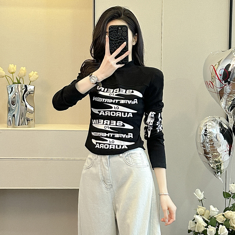 半高领紧身短款长袖T恤女春秋季新款修身显瘦甜酷辣妹打底衫上衣