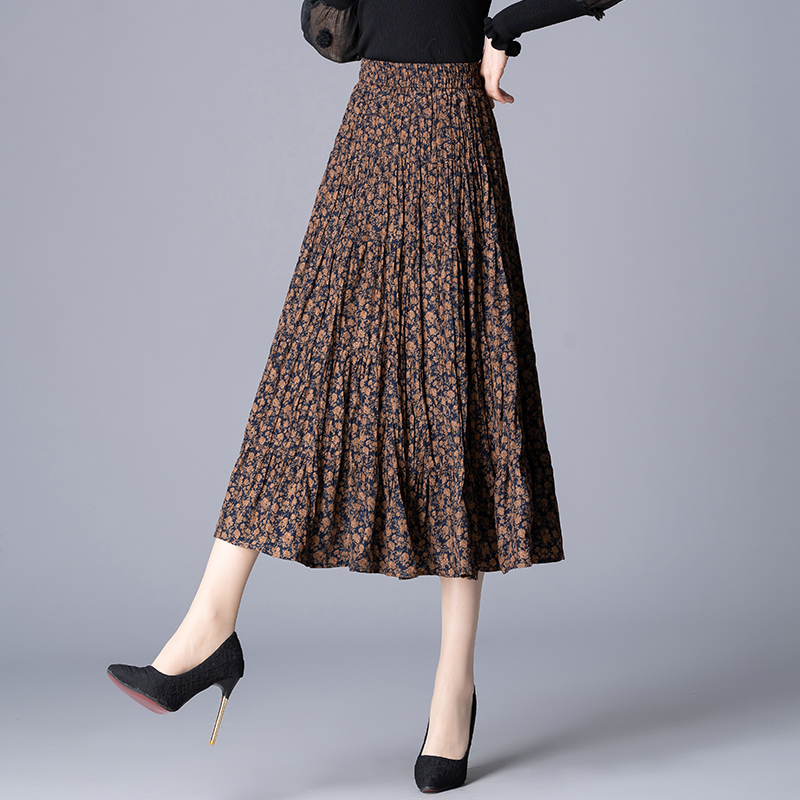 2025新款春秋韩版碎花裙女松紧腰垂感大摆半身裙遮胯百褶裙a字裙