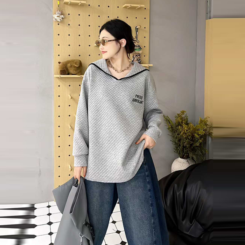 加肥披肩领拼色边字母上衣胖妹妹2025秋季款简约百搭大码女装卫衣