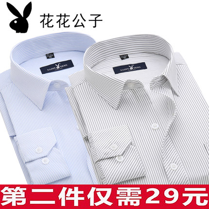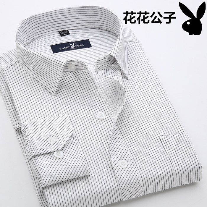 夏季中年男士衬衫长袖爸爸装商务休闲男中老年条纹全棉打底衬衣薄