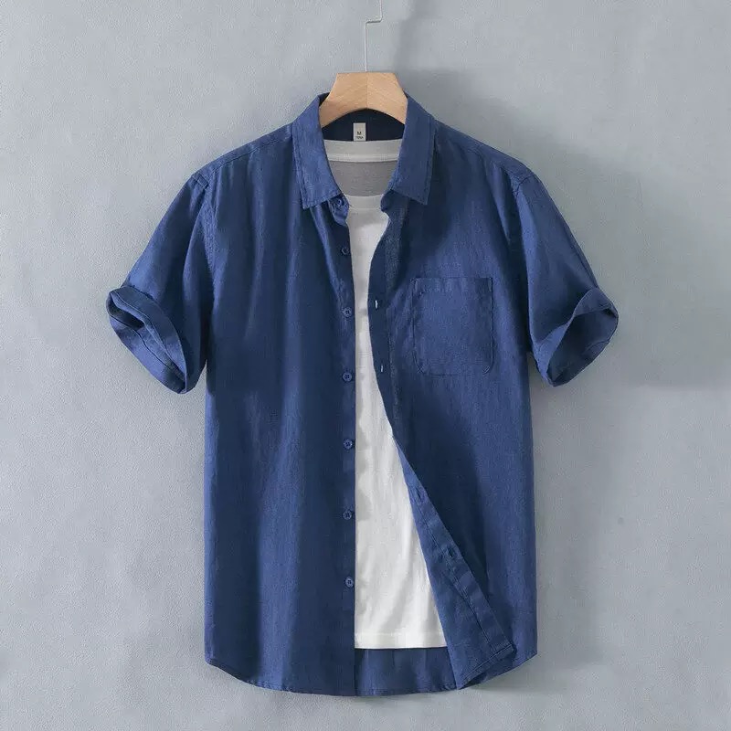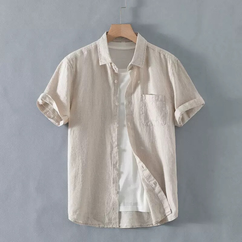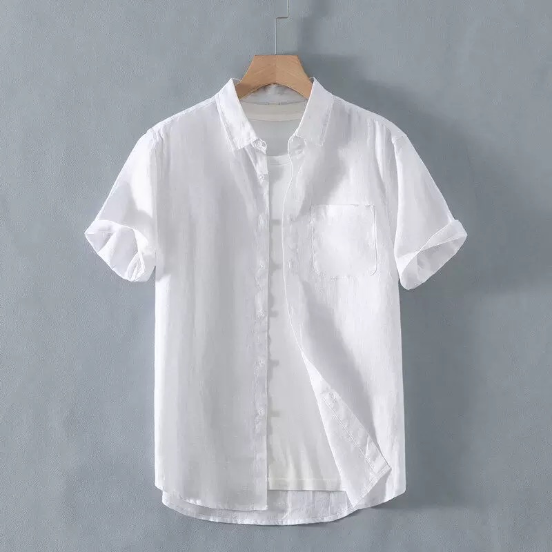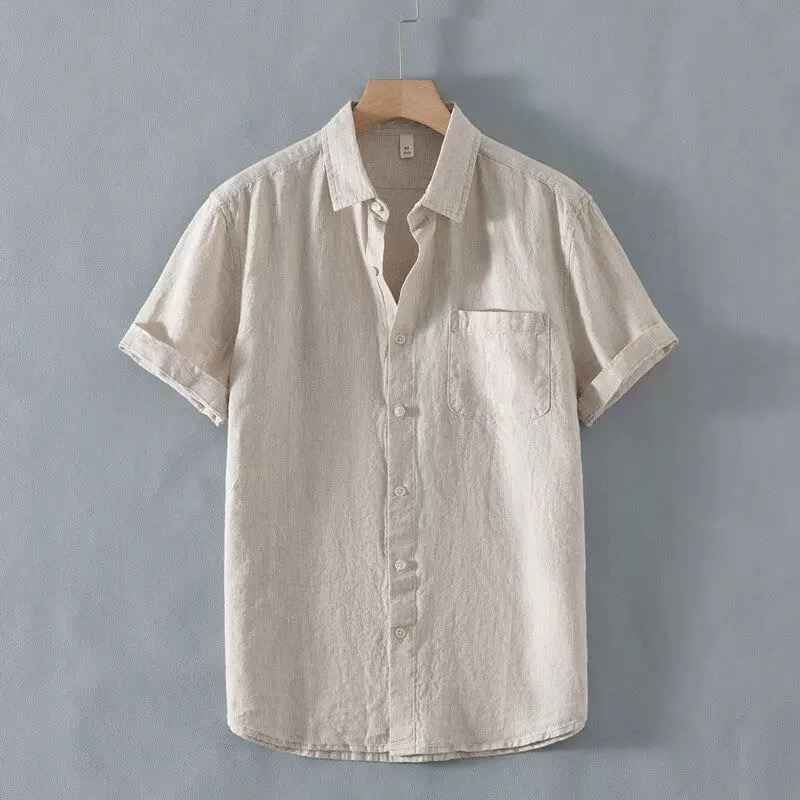 中国风中华立领棉麻衬衫男短袖夏季薄宽松新中式居士唐装亚麻衬衣
