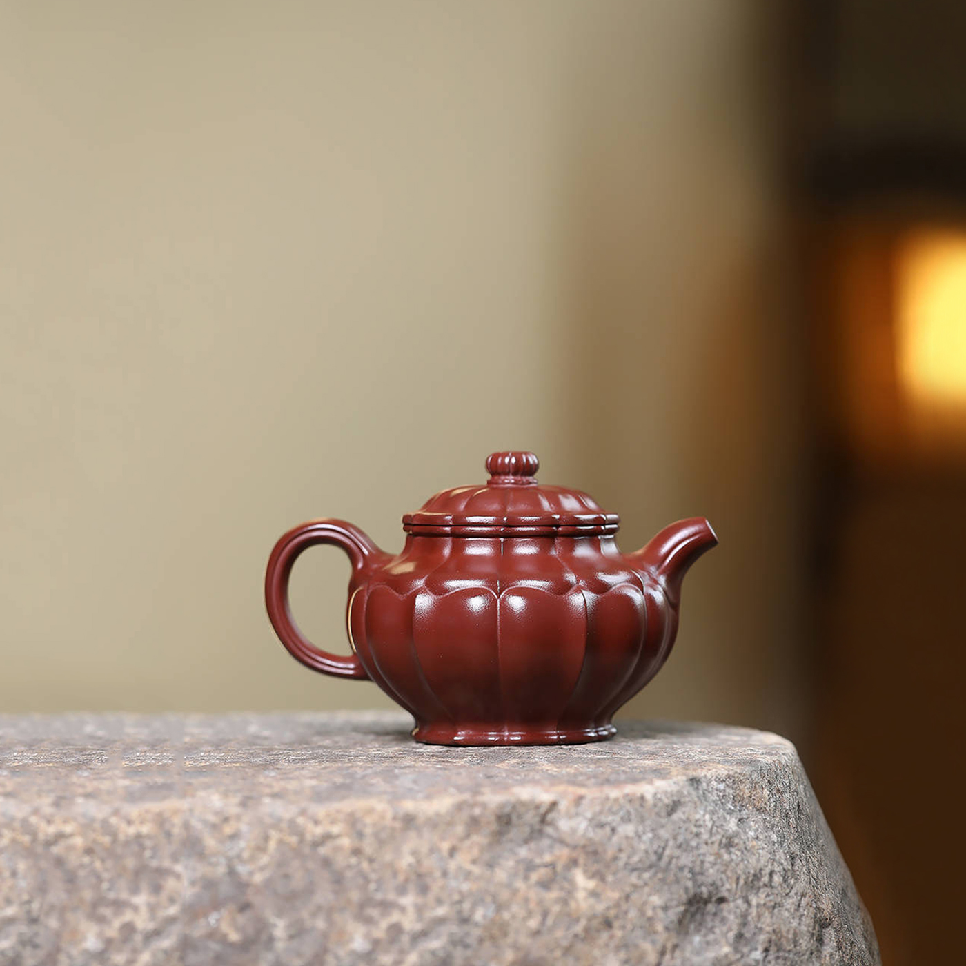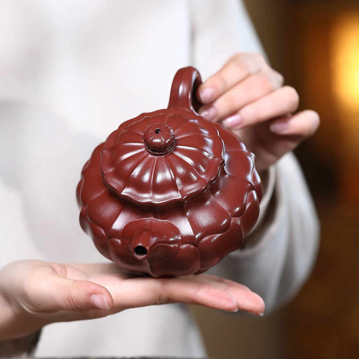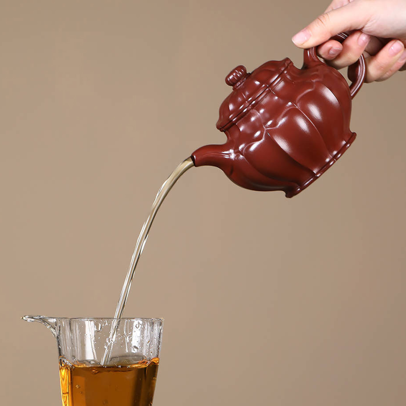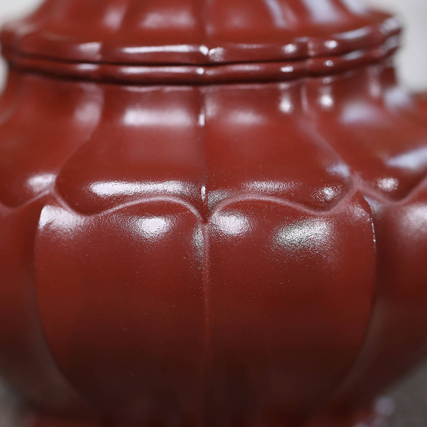 宜兴紫砂壶原矿红皮龙筋纹掇只合菱泡茶壶家用功夫茶具茶壶 400ml