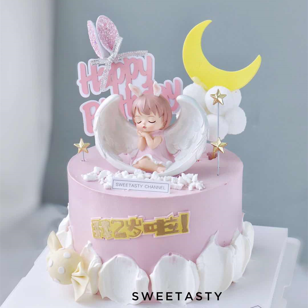女孩摆件蛋糕装饰兔耳朵天使娃娃