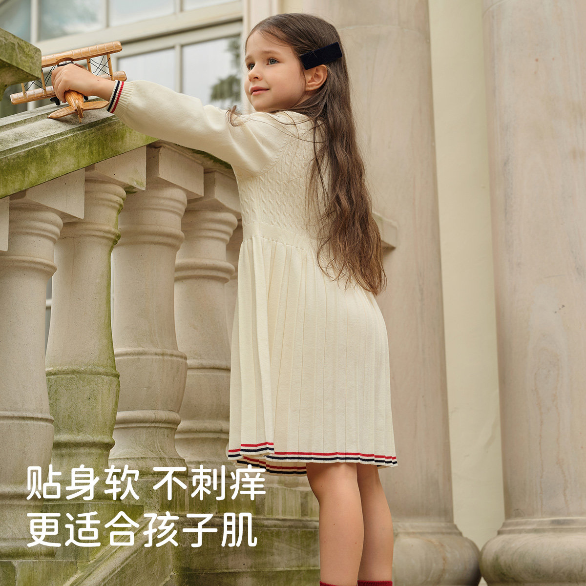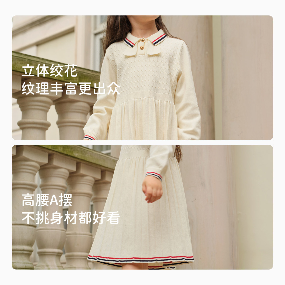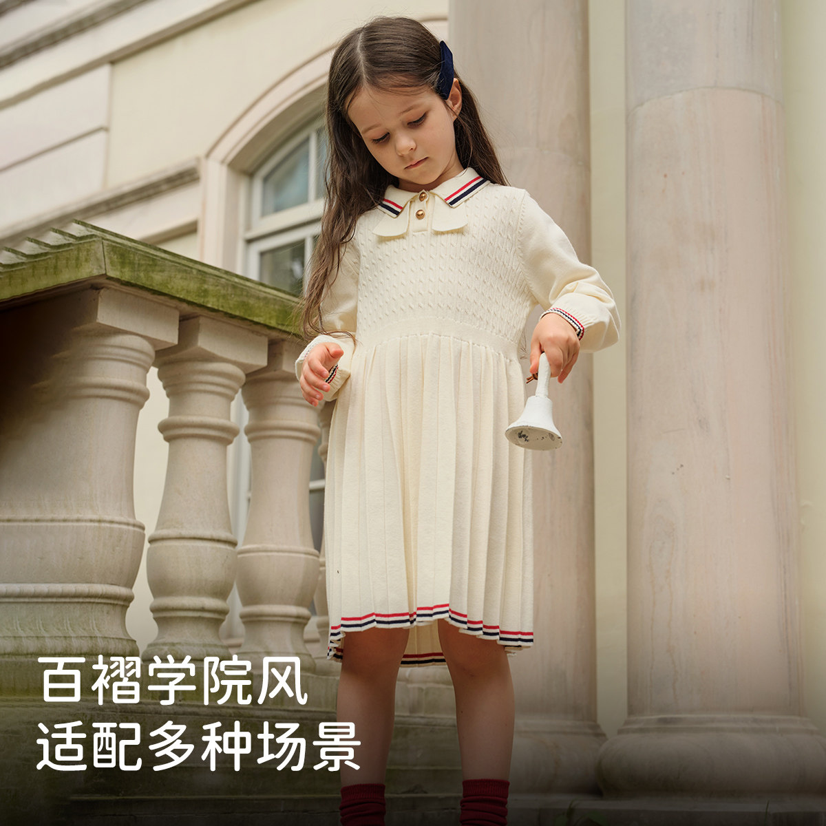 戴维贝拉儿童毛衣连衣裙2025新款女童学院风百褶裙中大童秋装裙子