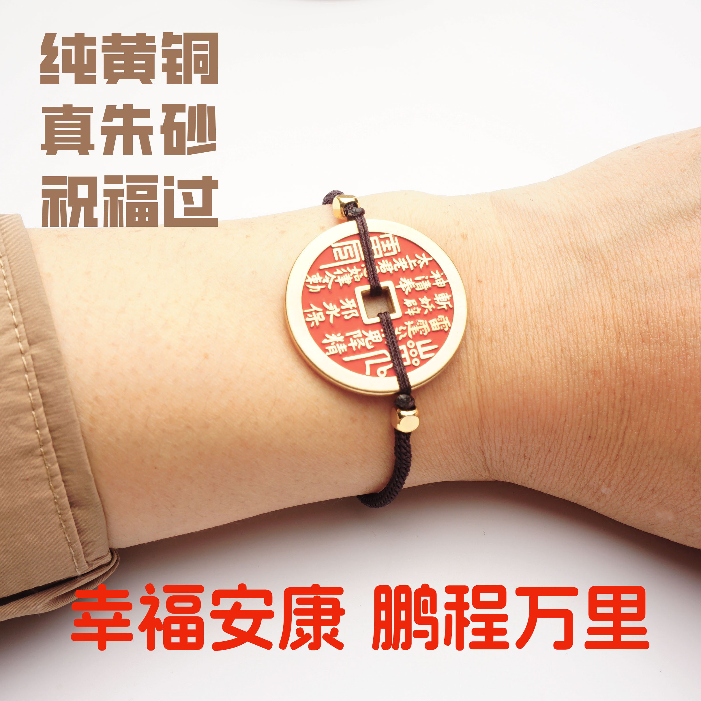 【道观直发】山鬼花钱手链纯黄铜手工编织手绳真朱砂本命年红绳