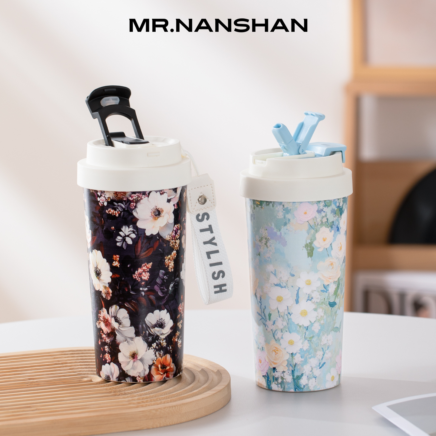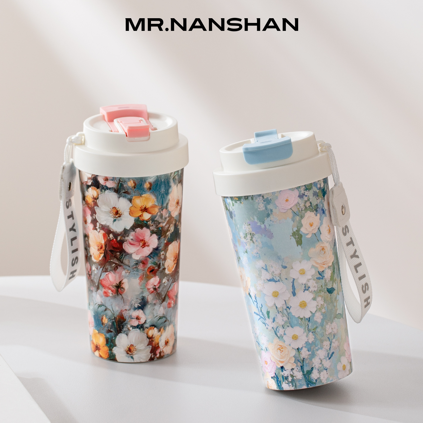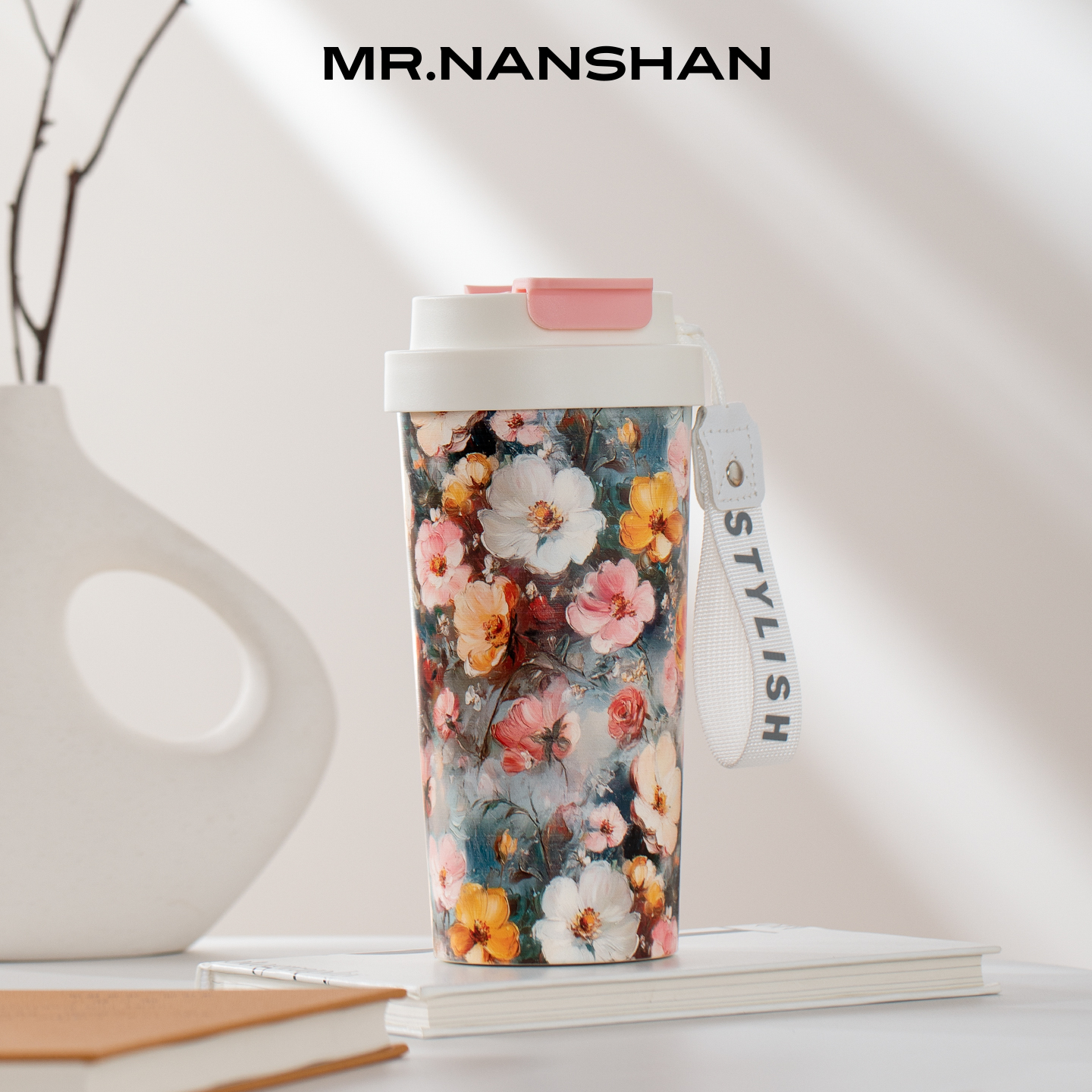 南山先生百花集咖啡保温杯陶瓷内胆咖啡杯女高颜值随行吸管水杯子